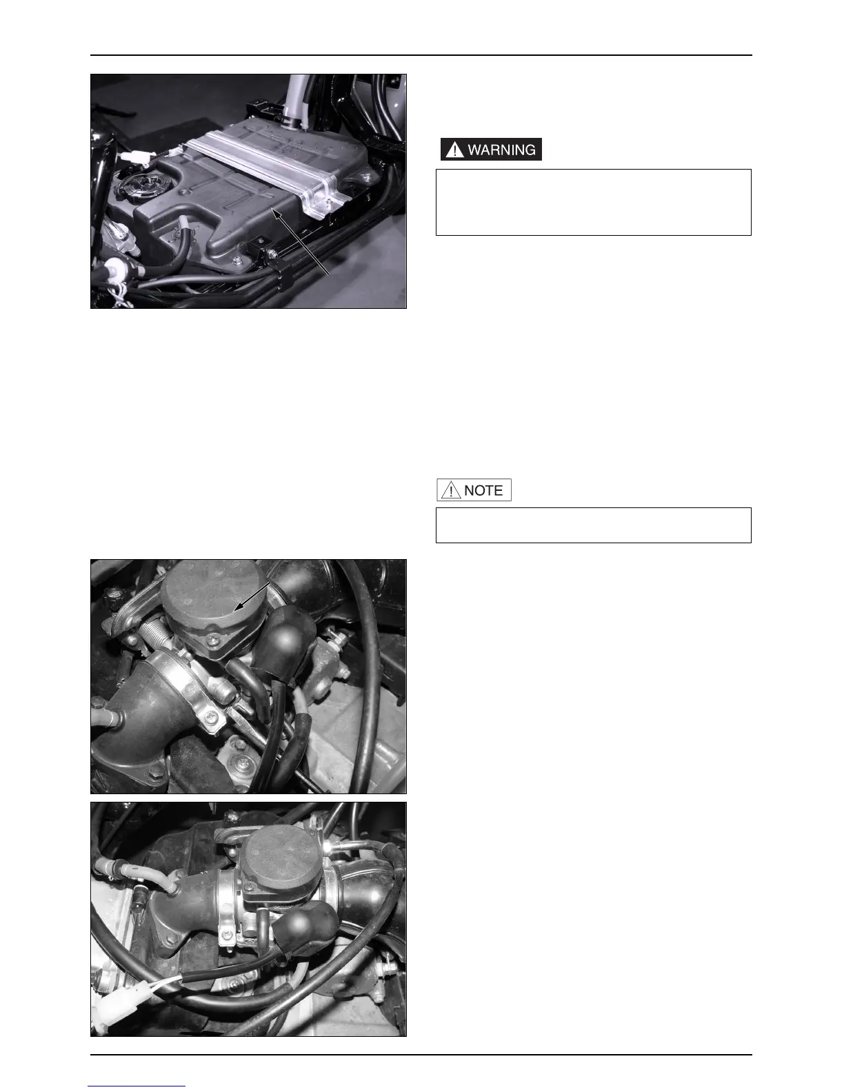 •After removing the fuel tank, be sure to close the