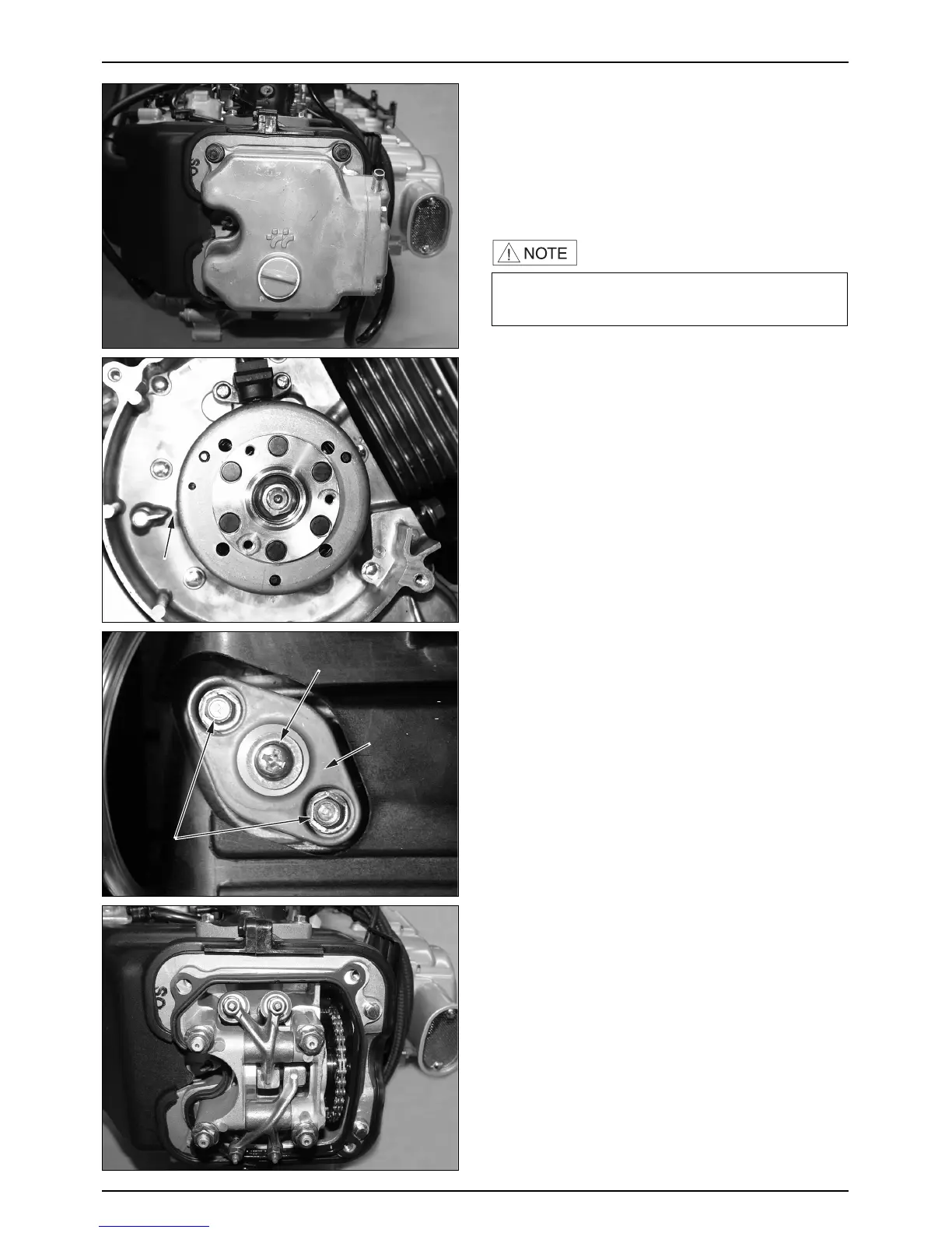 ● Loosen the pan screw of the cam chain, remove the