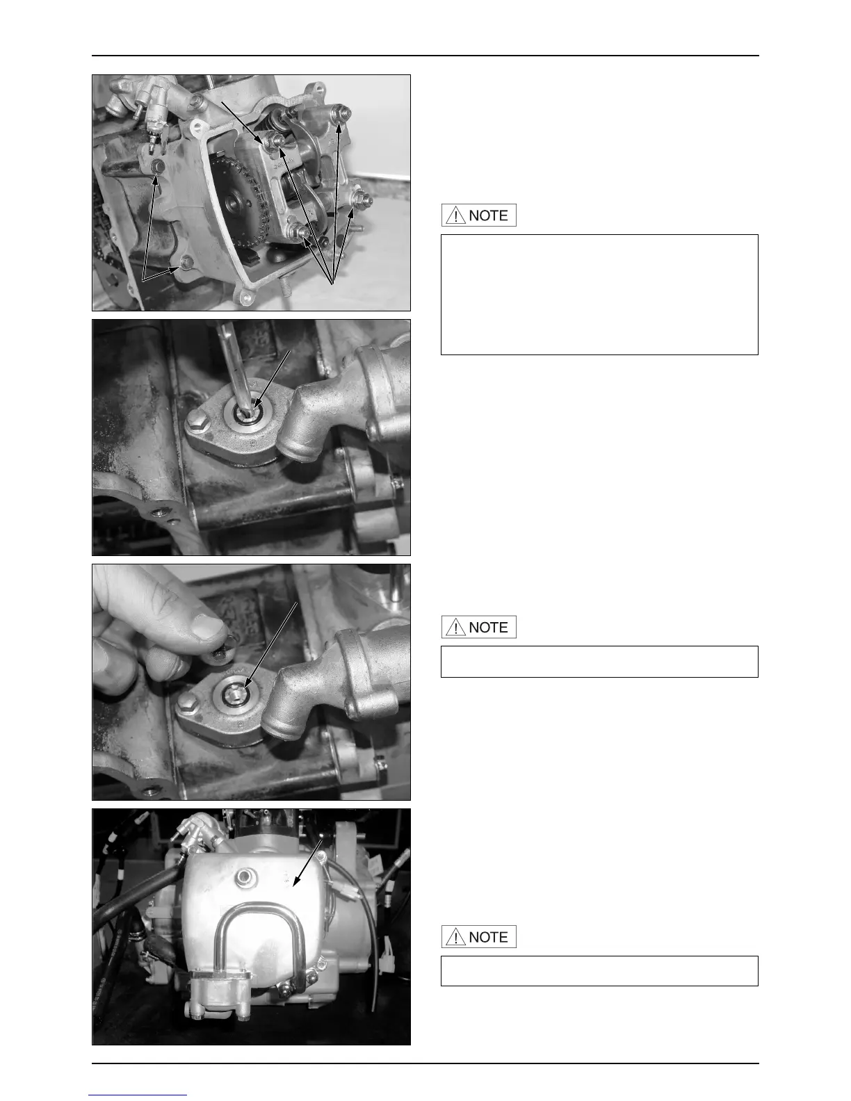 ● Tighten the 4 cylinder head nuts and the 2 bolts