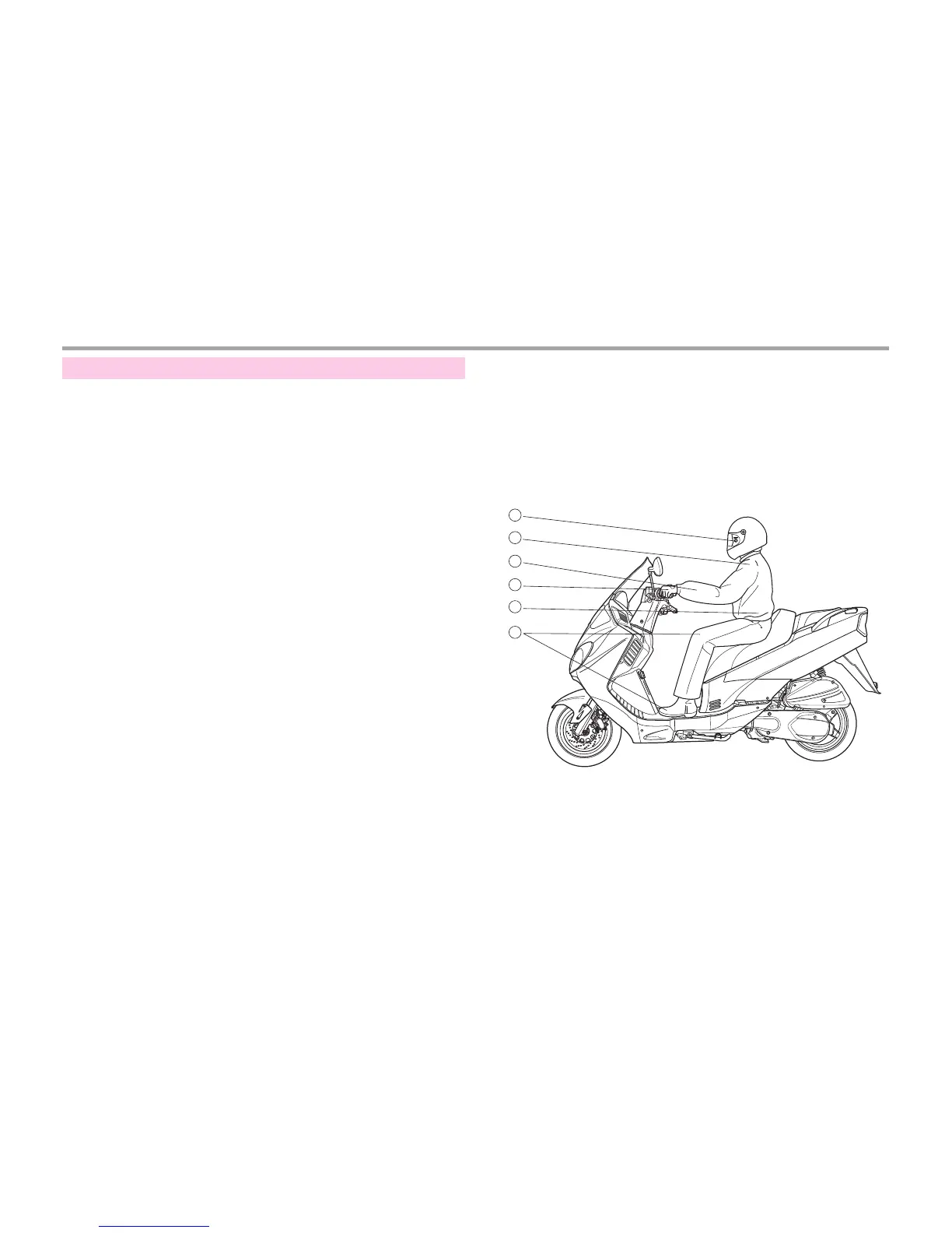 ⑥ Knees : Press the fuel tank slightly.