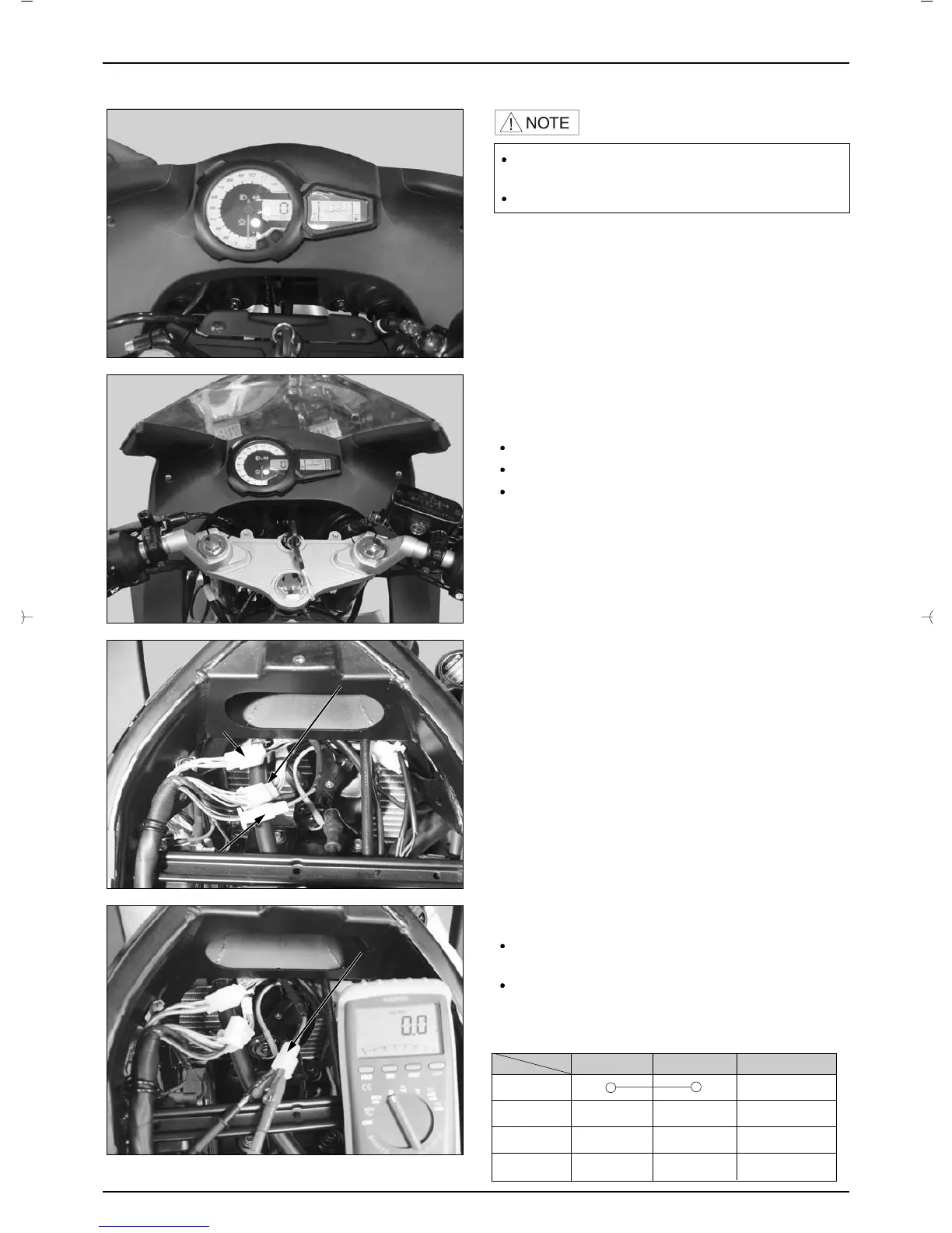 main switch connector in each switch position.