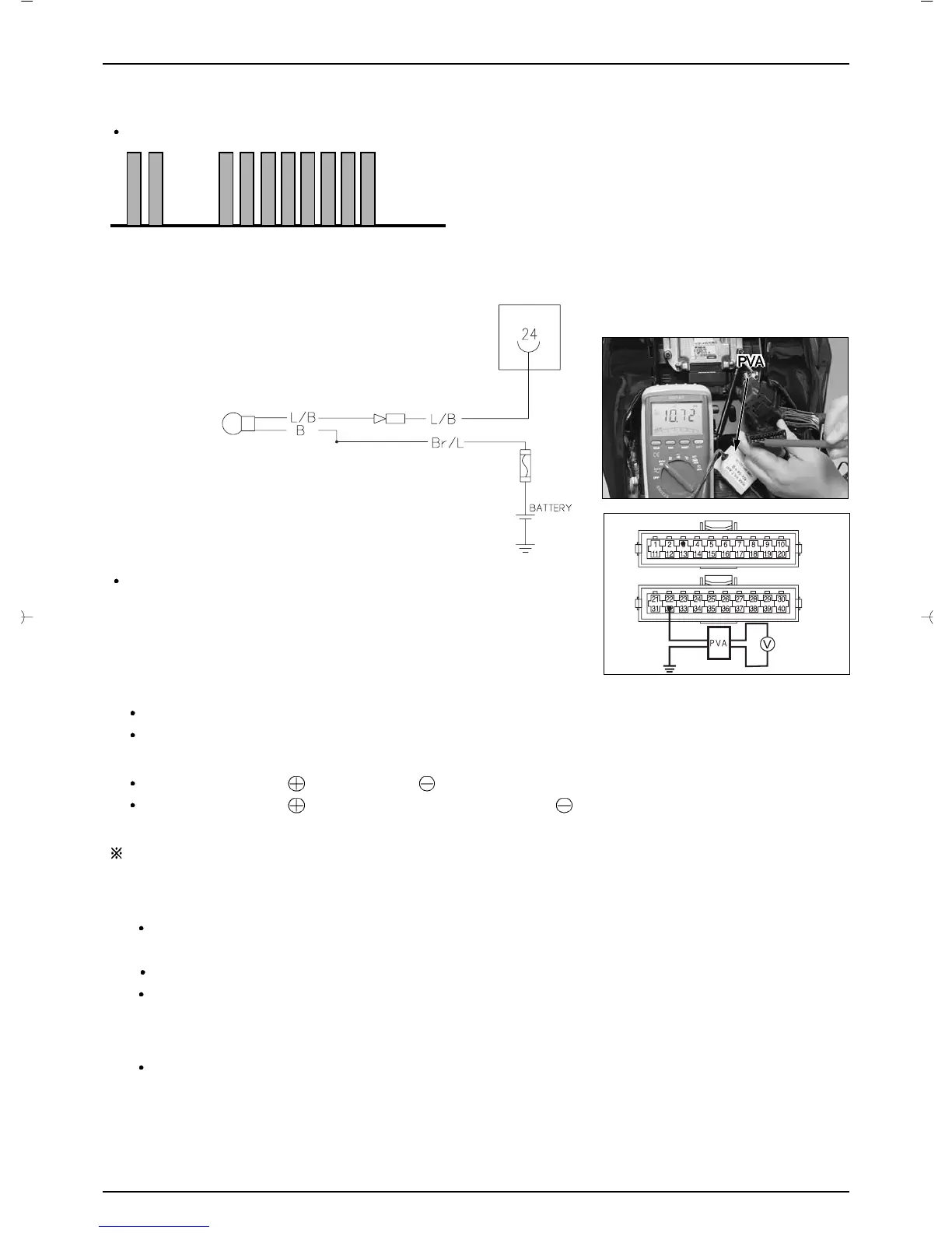 Measuring terminal : B electric wire ~ EARTH => Output Voltage: battery voltage