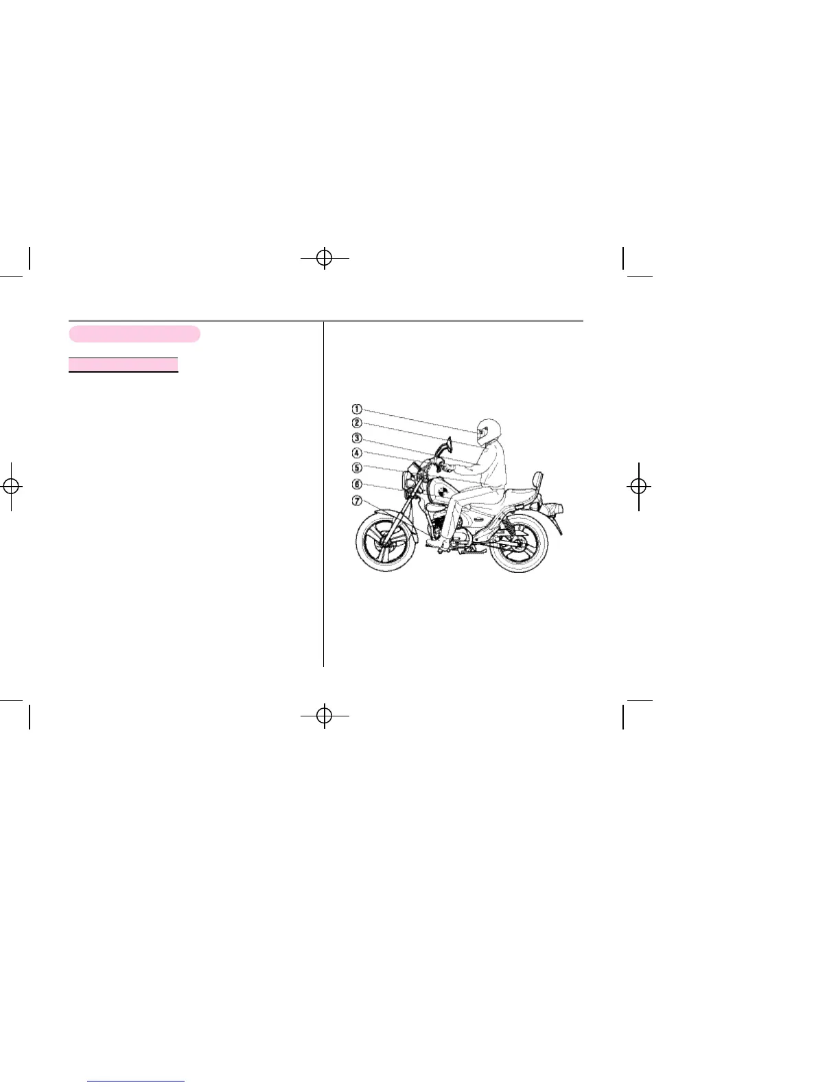 ⑥ Knees : Press the fuel tank slightly.