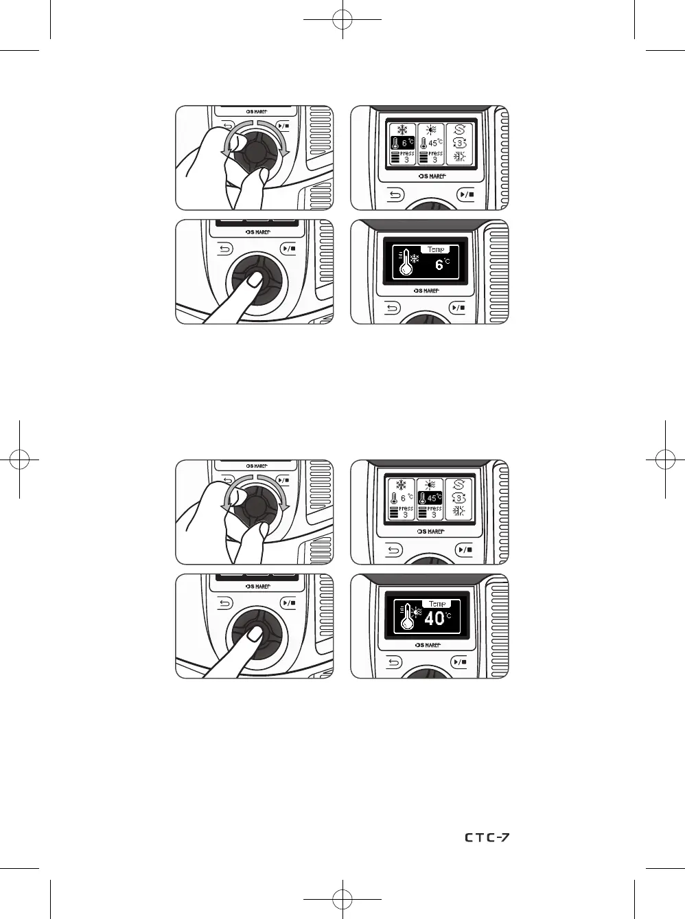 3-1) On the Cold setting screen, rotate the knob wheel counterclockwise or clockwise to select