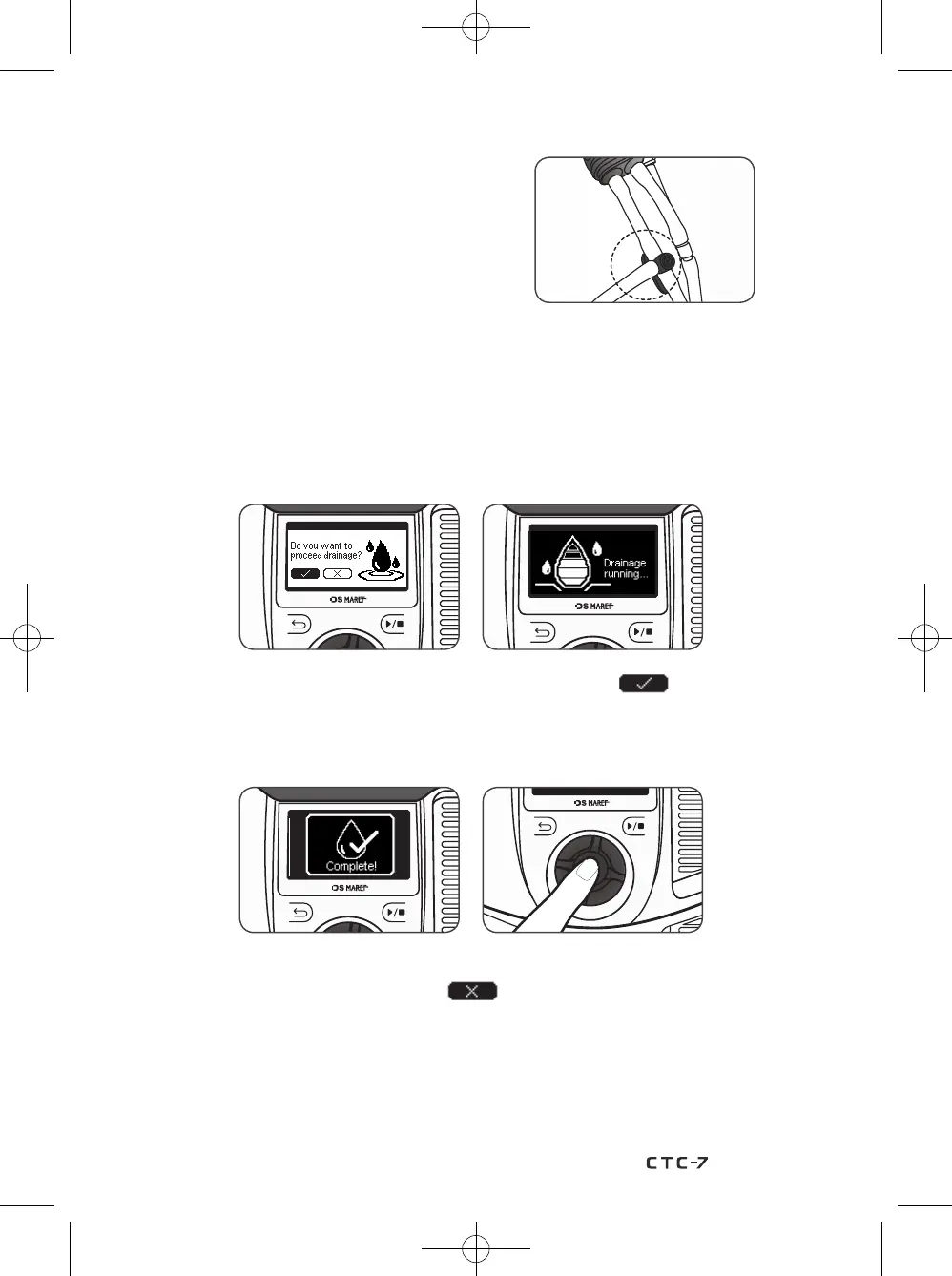 6) After the Draining process is complete and a pop-up screen appears, press the knob wheel.