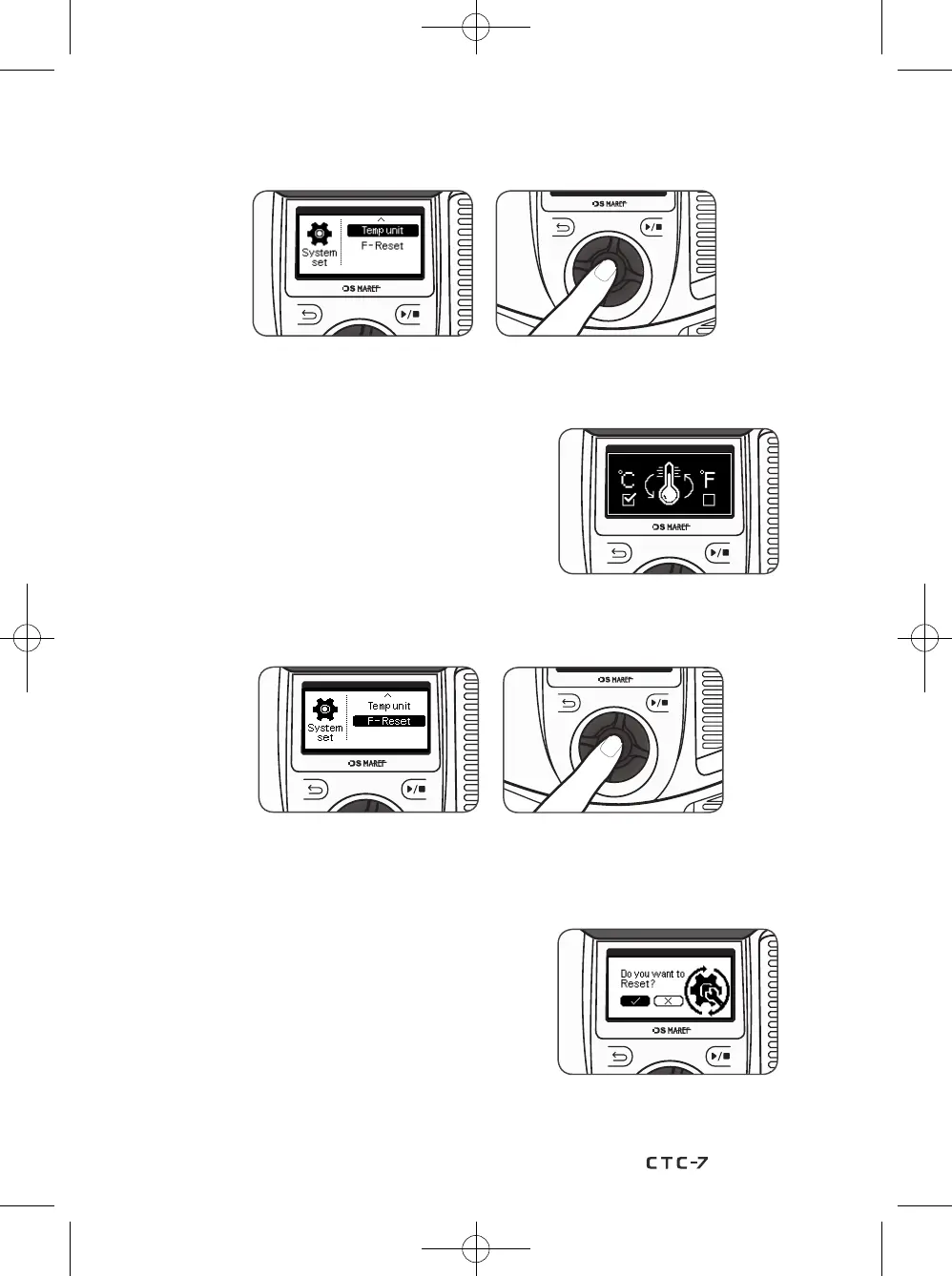 1) On the System set screen, rotate the knob wheel, select ‘Temp unit’, and press the