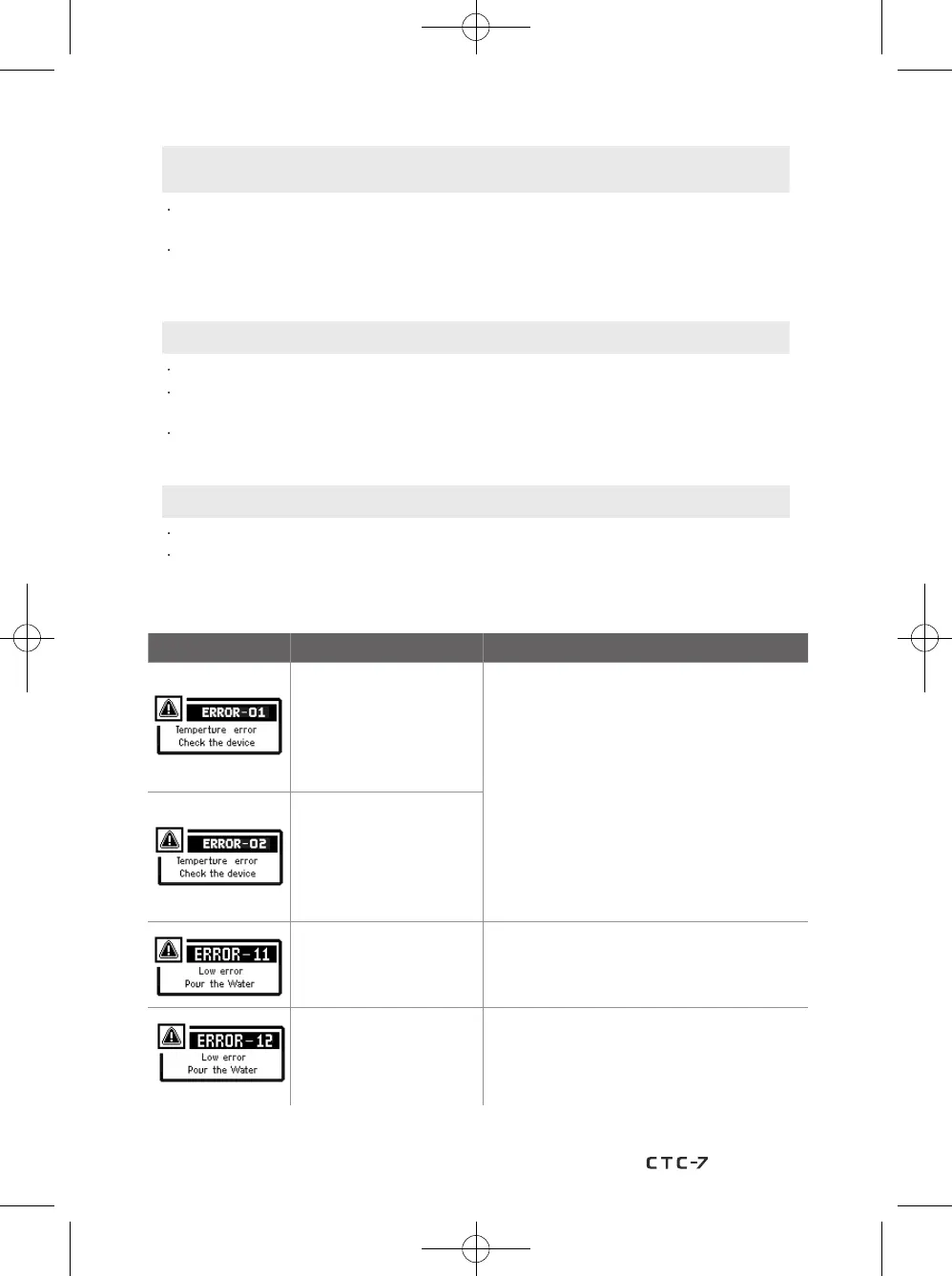 * If an error occurs during operation, the device displays the error code on the LCD screen.