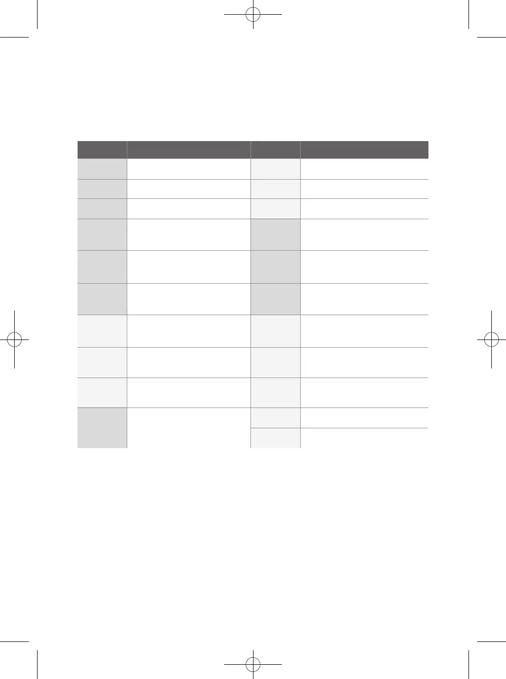Part no. Cuff names and size Part no. Cuff names and size