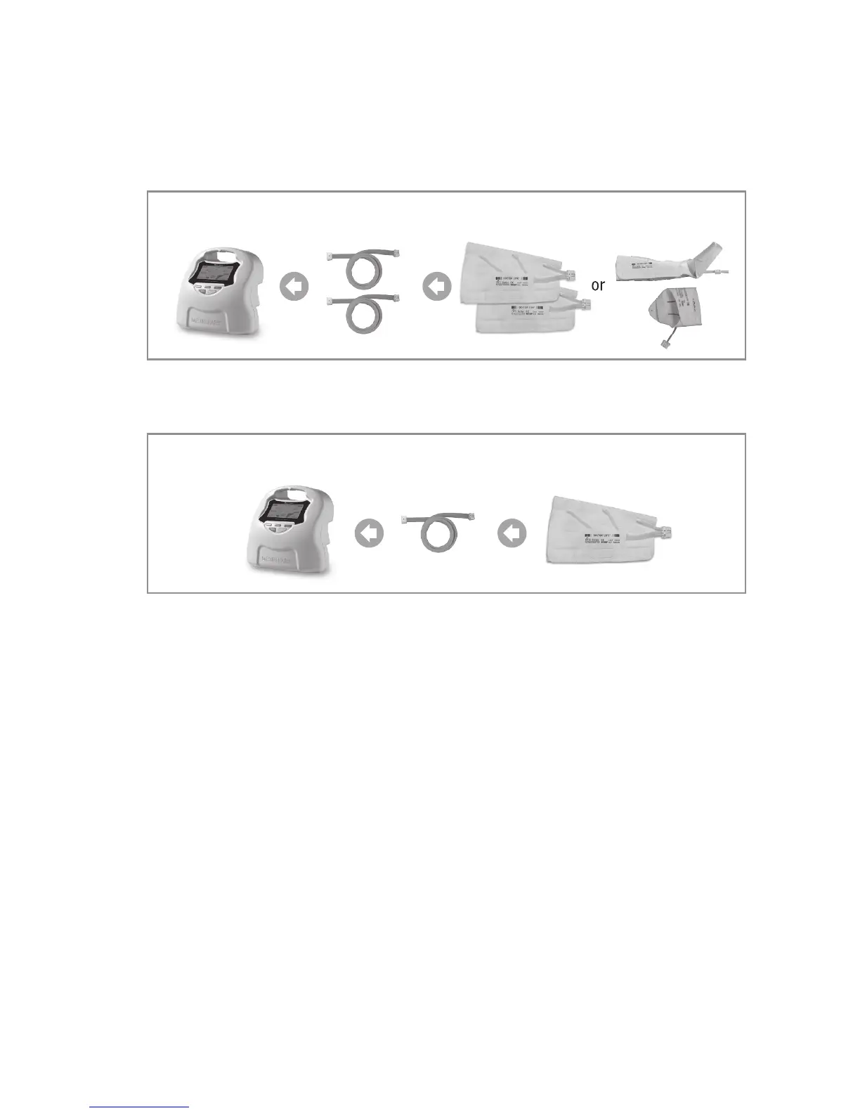 hoses after the cuffs are applied to the patient. Turn the power on to the device after