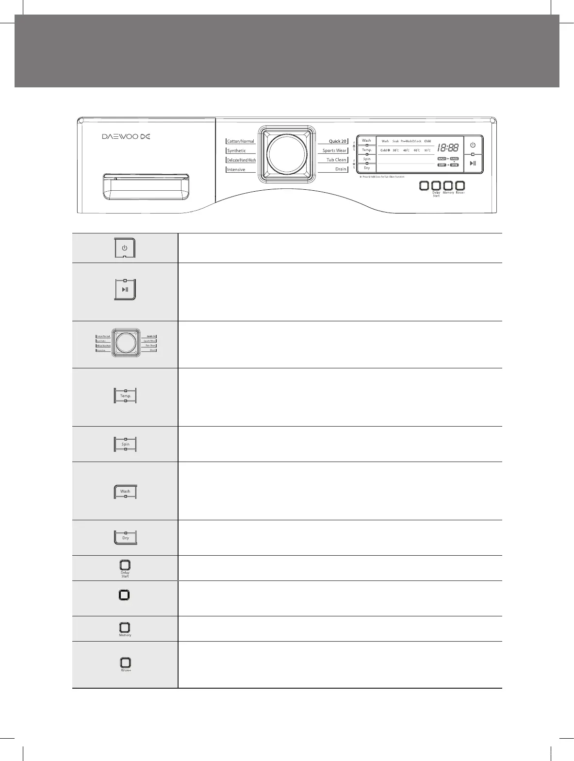• Steam - During washing time Steam is sprayed in Drum. Laundry is more clean.
