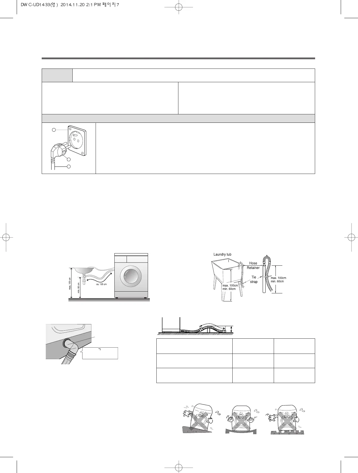 • Proper securing of the drain hose will protect the floor from damage due to water leakage.