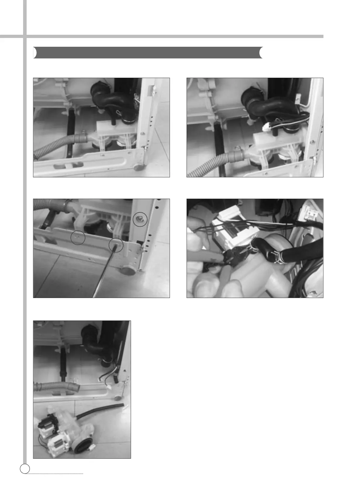 1) Lay the right side of the washer on the floor. 2) Remove connectors.