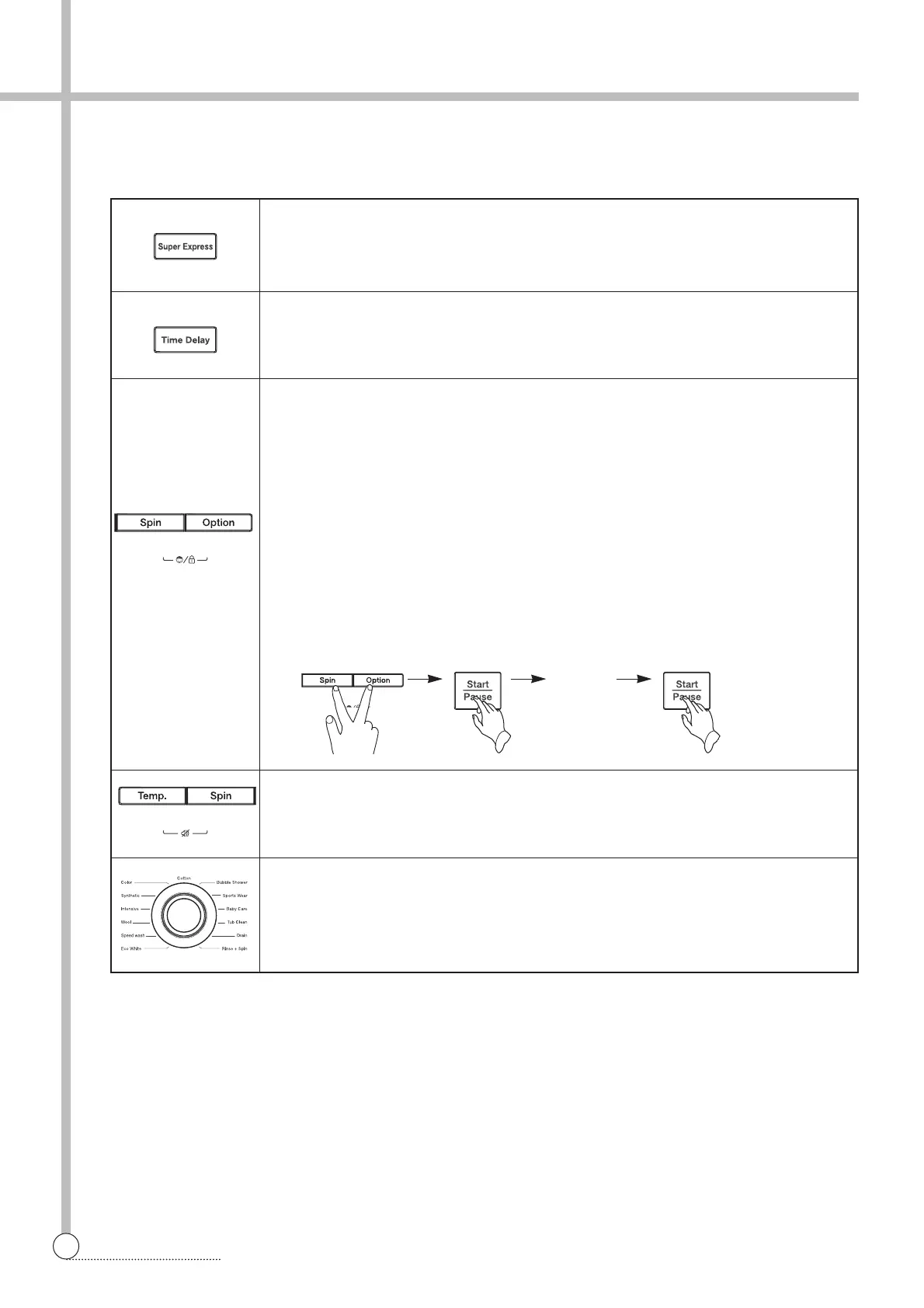 washer by a child. During an operation of washer, press ‘Spin’ and ‘Option’ buttons