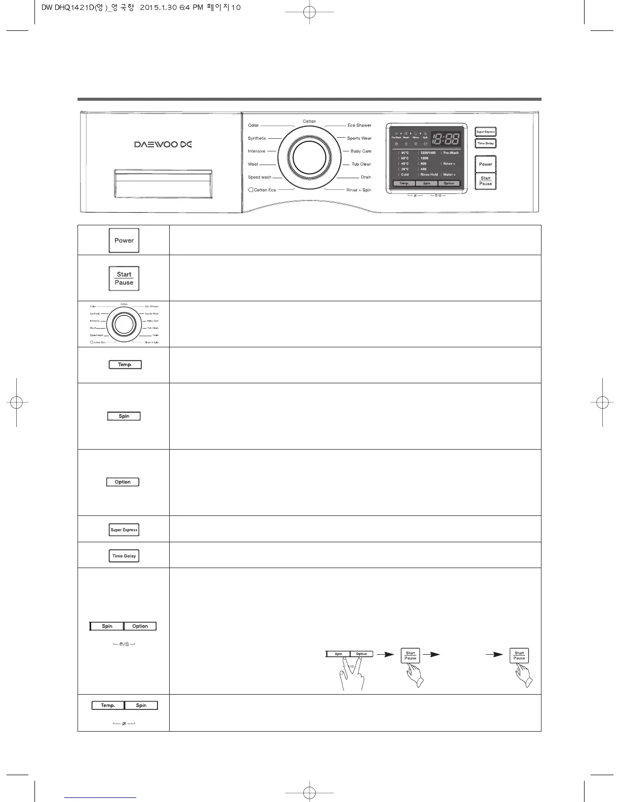 child. During an operation of washer, press ‘Spin’ and ‘Option’ buttons simultaneously.