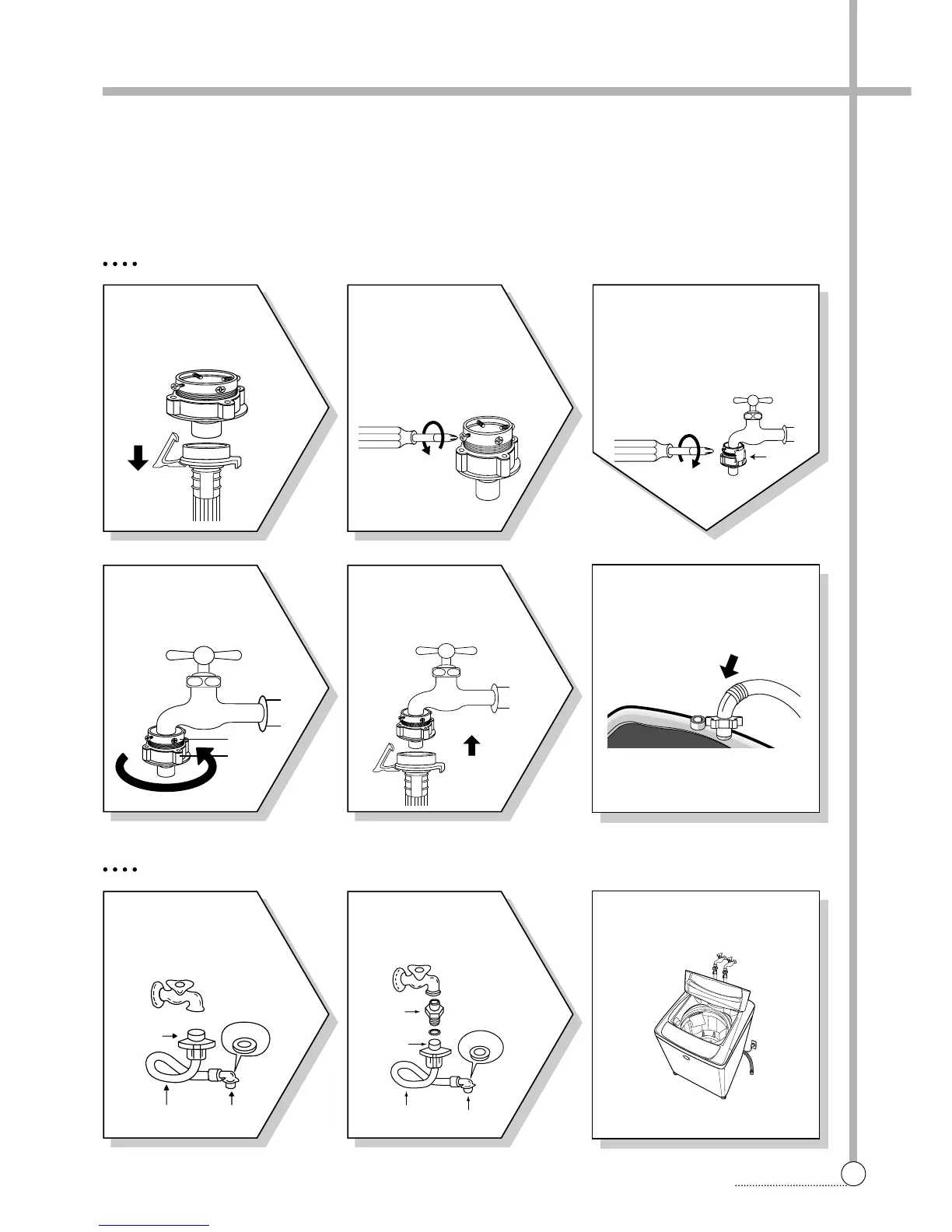 In using only one water tap or in case of attached one water inlet valve, connect the inlet hose to the cold water inlet