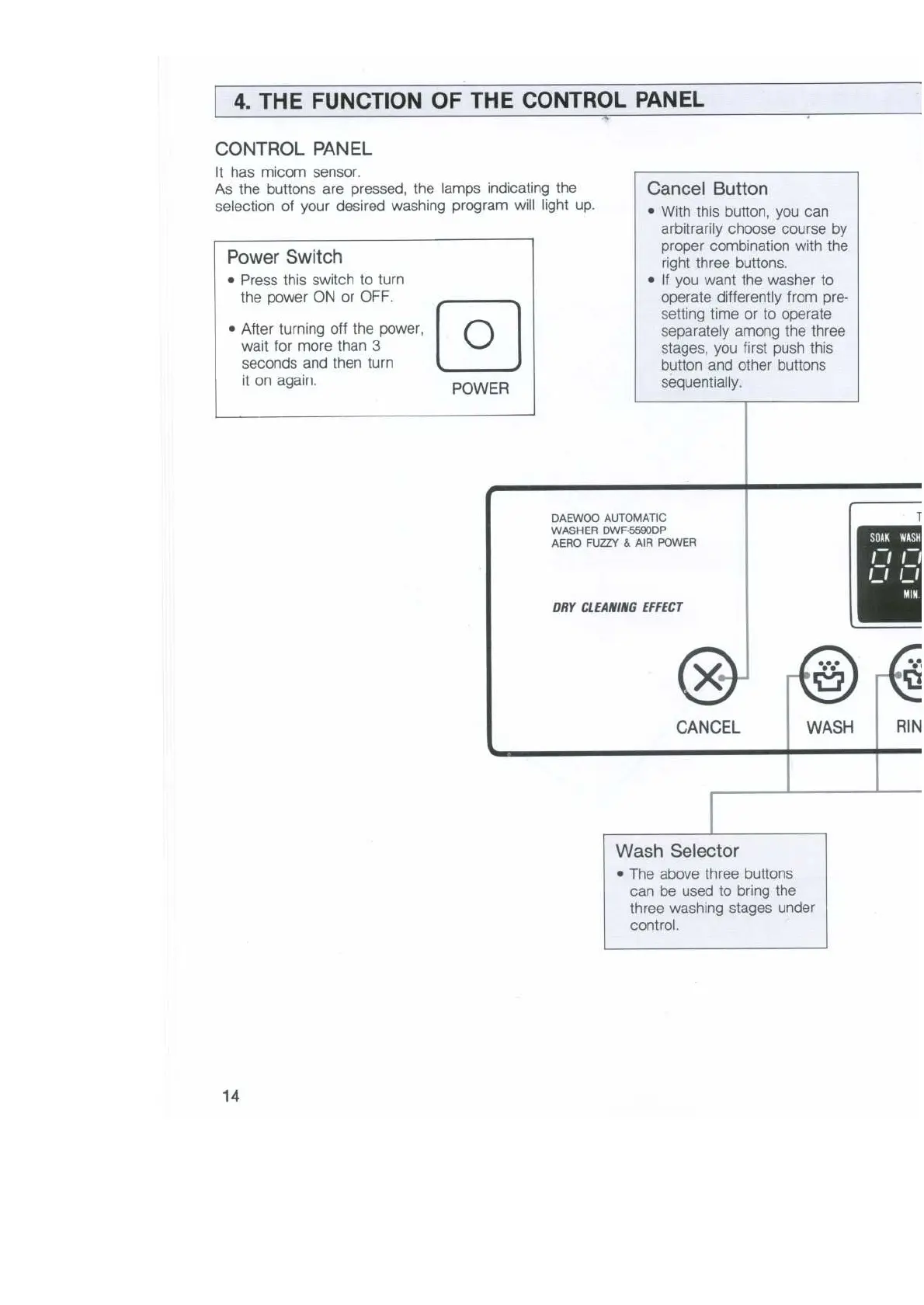 DAEWOO ELECTRONICS DWF-7570DP - 4 The Functions of the Control Panel