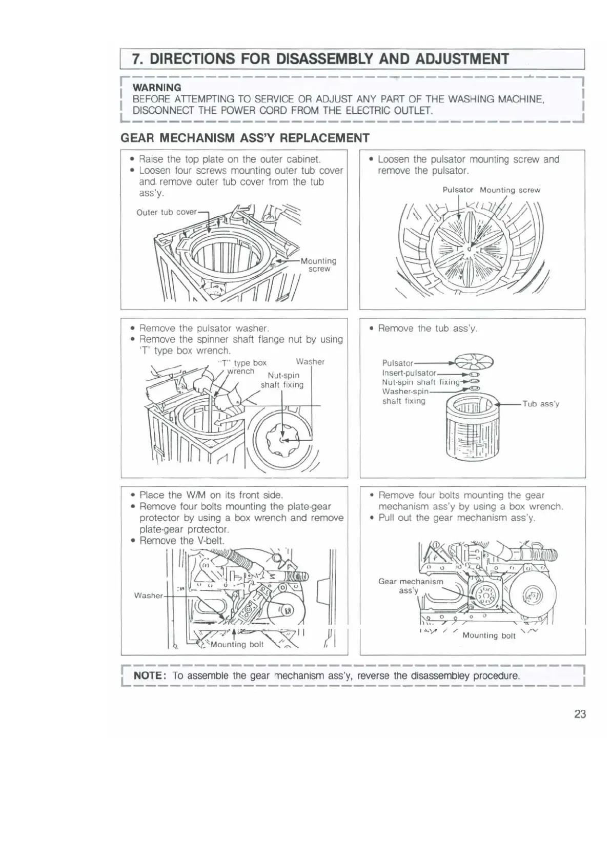 DAEWOO ELECTRONICS DWF-7570DP - 7 Disassembly Instruction and Adjustment; Gear Mechanism Assy Replacement