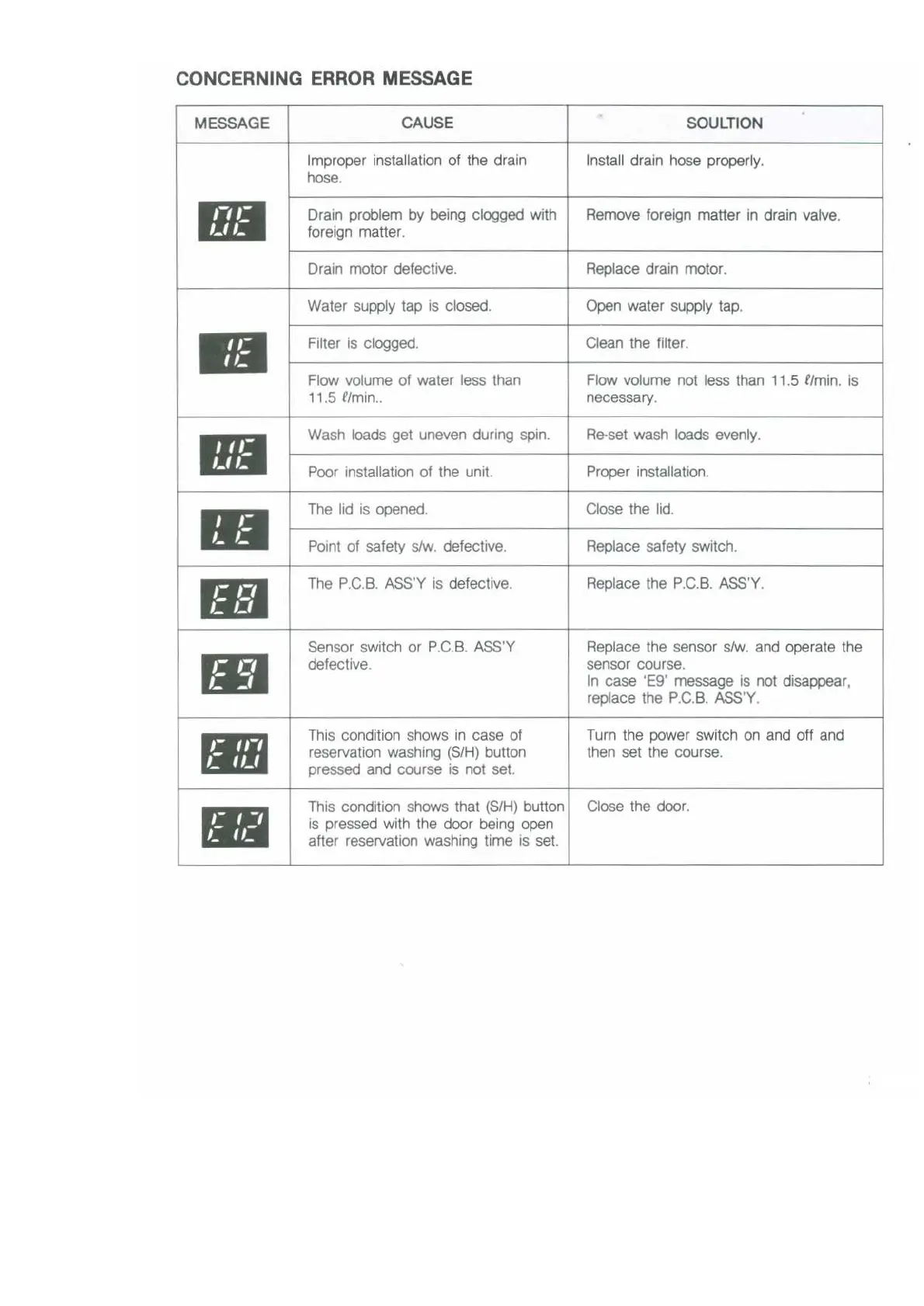 DAEWOO ELECTRONICS DWF-7570DP - Concerning Error Message