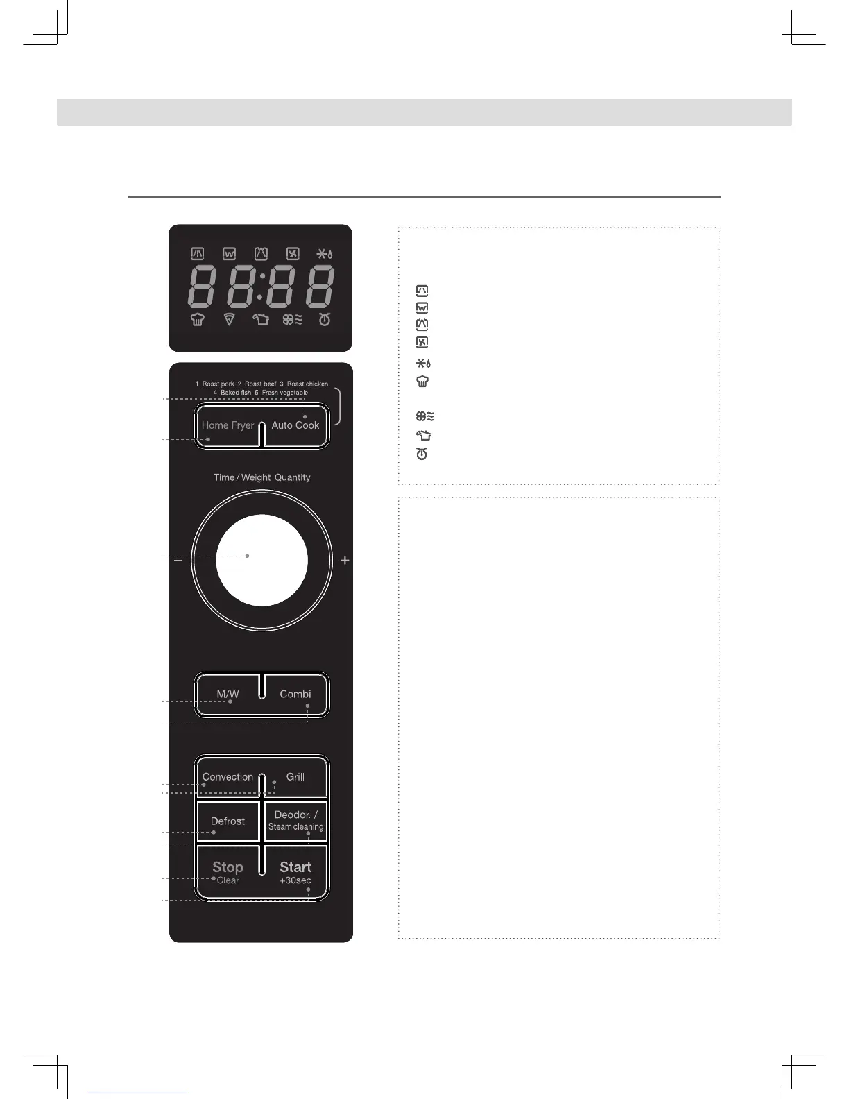 Deodor. / Steam cleaning : Used to deodorize oven or to clean
