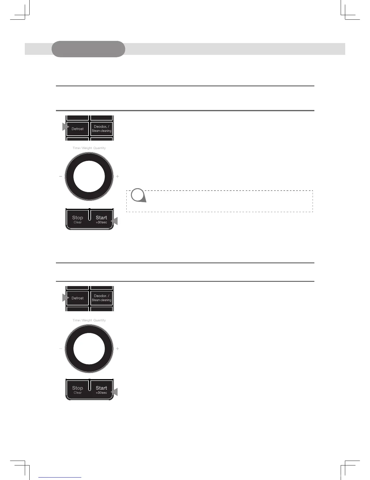 1. Press Defrost buon once. The Defrost indicator lights and “ 0 ” is displayed. The “g”
