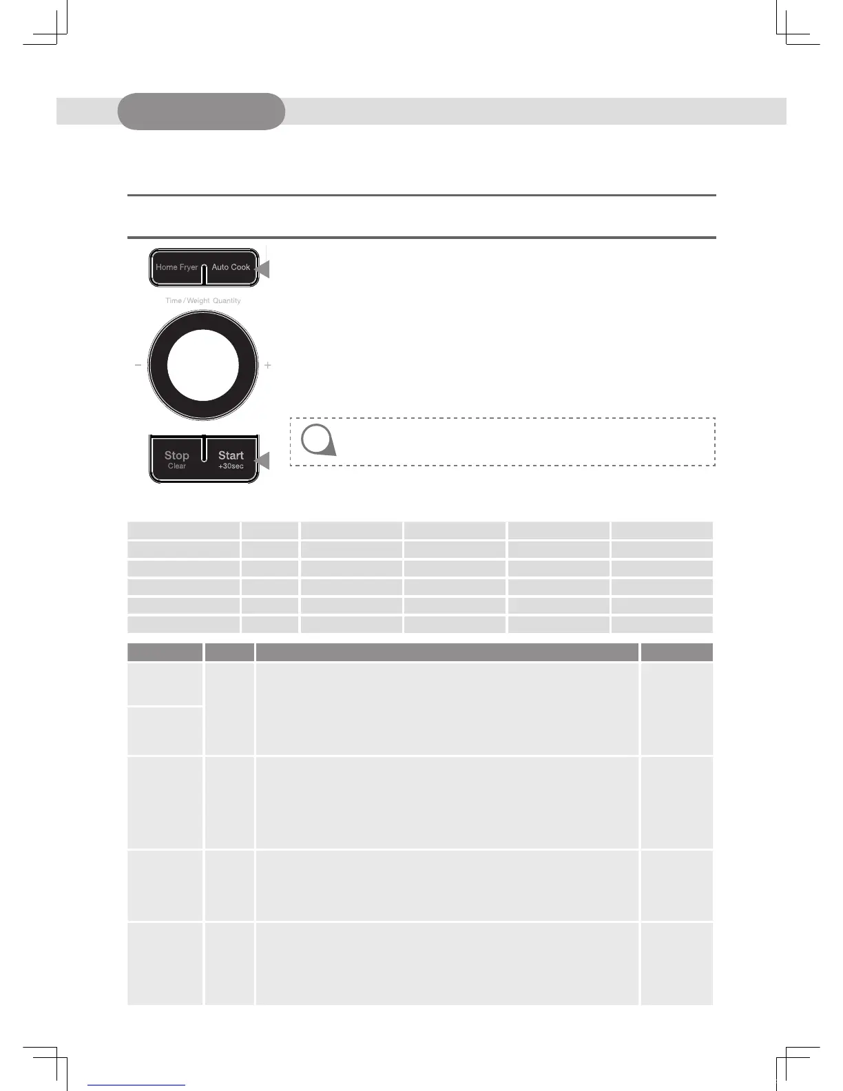 Refer to the auto cook menu chart below for further details.