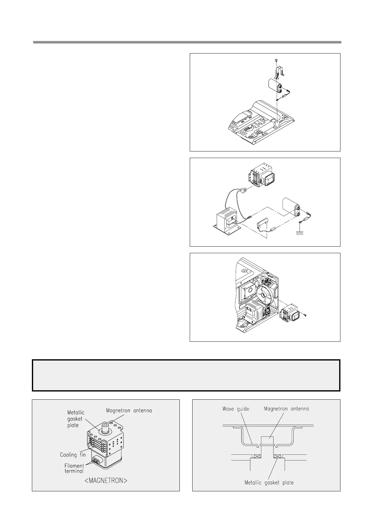 NOTE : Never install the magnetron without the metallic gasket plate which is packed with each magnetron to pre-