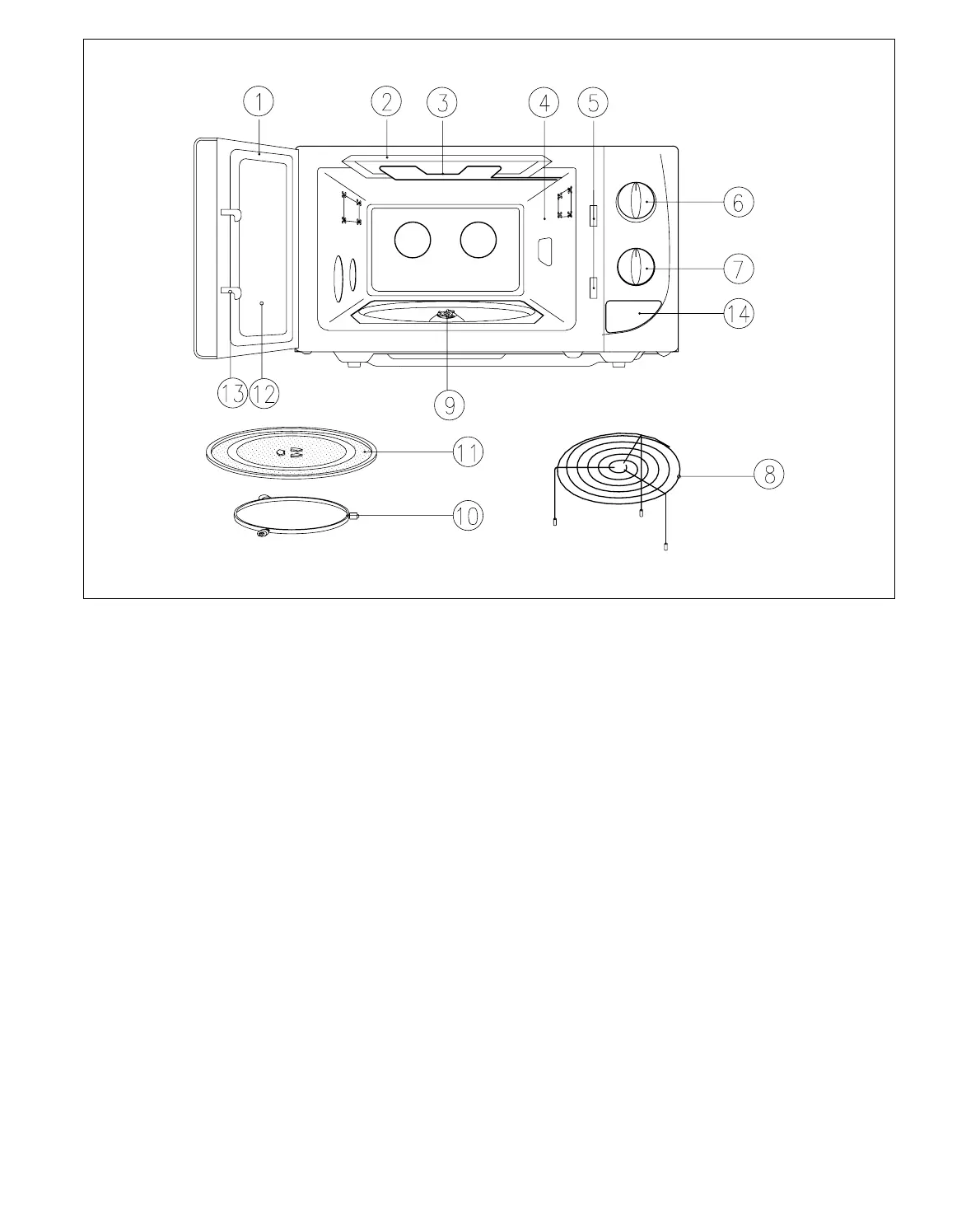 1 Door seal - Door seal maintains the microwave energy within the oven cavity and prevents microwave leakage.