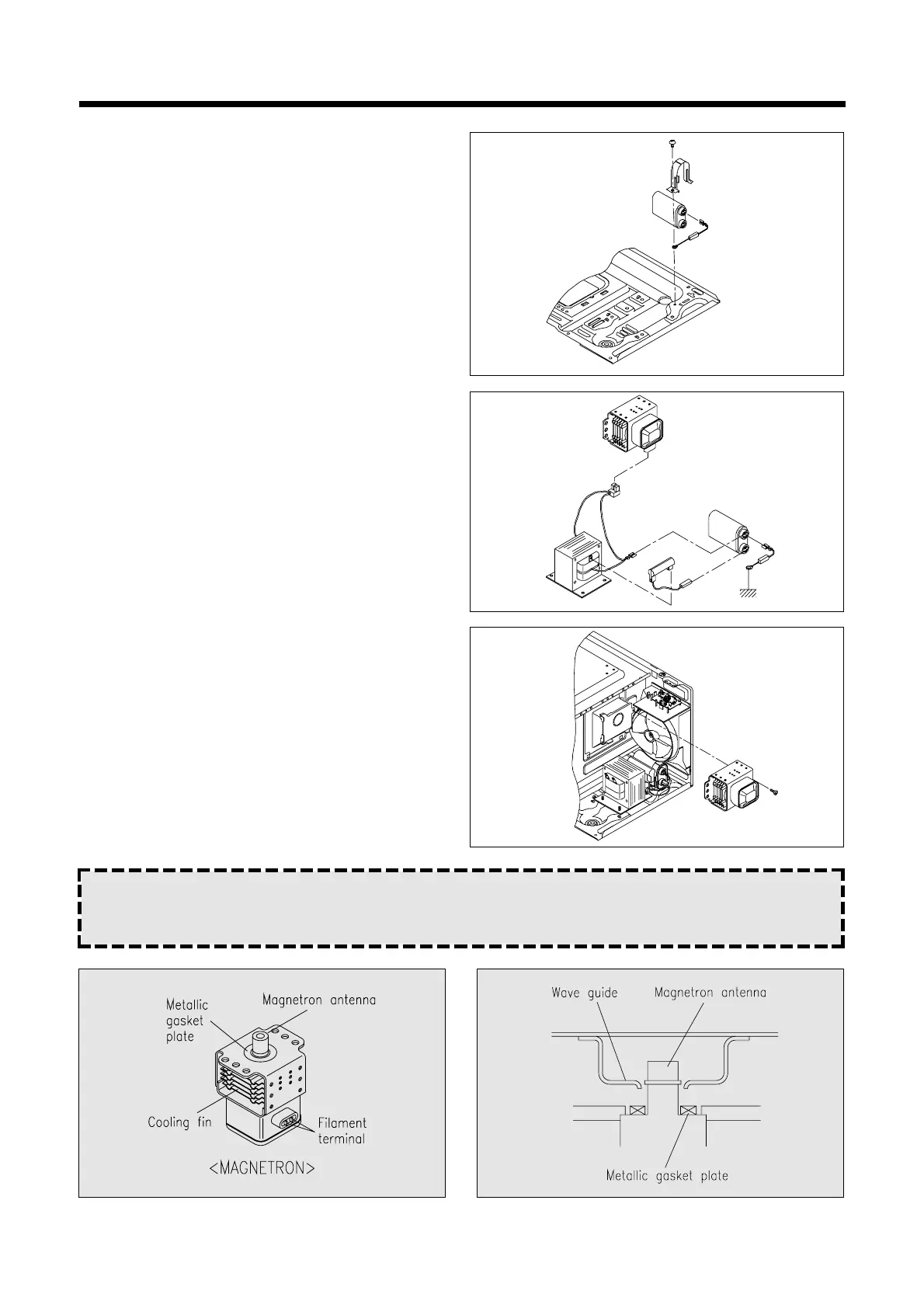 NOTE : Never install the magnetron without the metallic gasket plate which is packed with each magnetron to