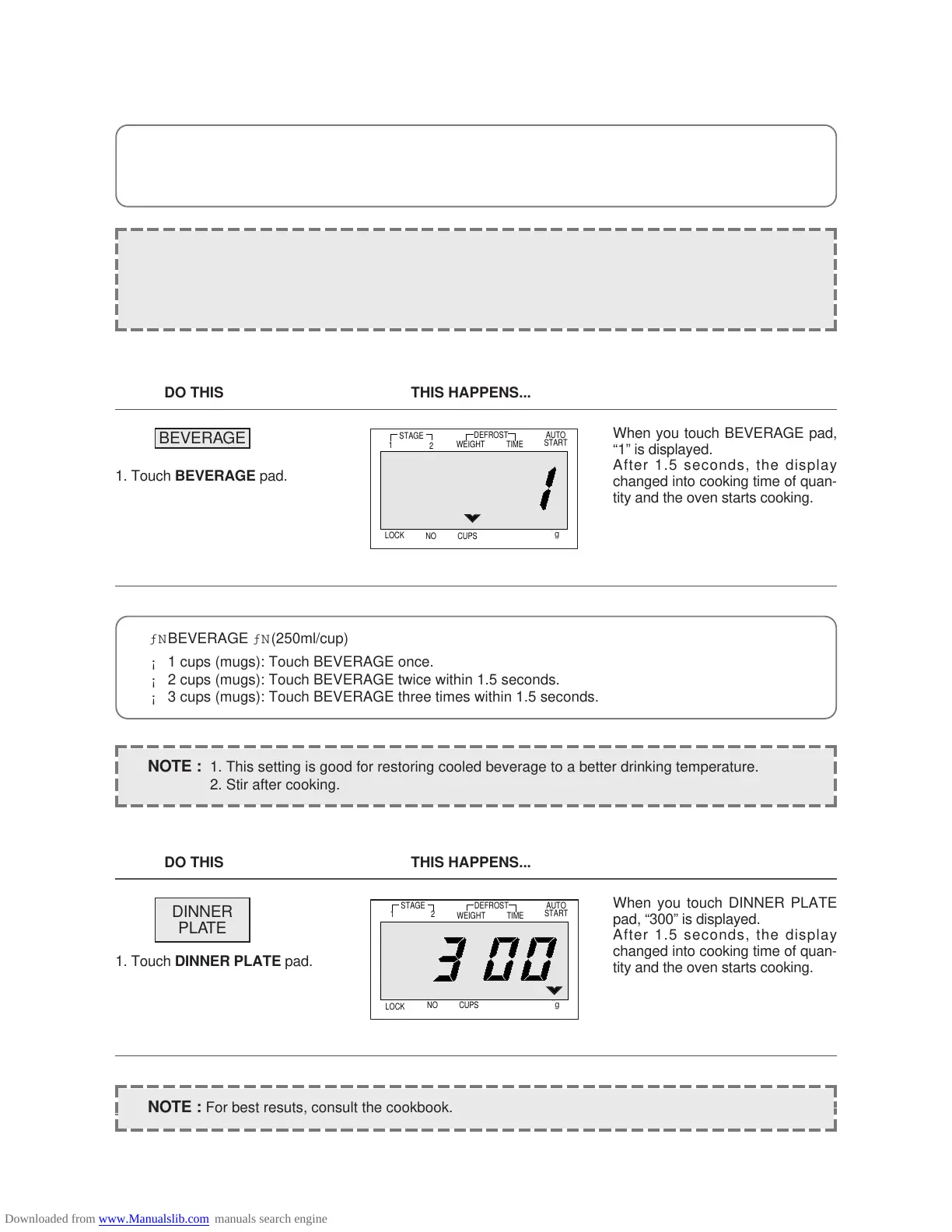NOTE : 1. This setting is good for restoring cooled beverage to a better drinking temperature.