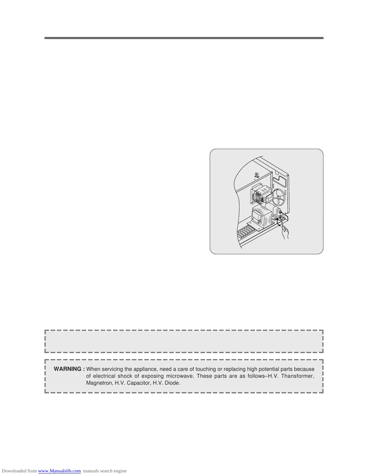 WARNING : When servicing the appliance, need a care of touching or replacing high potential parts because