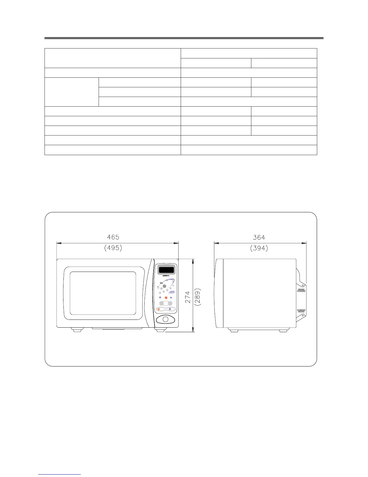 OUTSIDE DIMENSIONS (WXHXD) 465 X 274 X 364 mm 495 X 289 X 394 mm