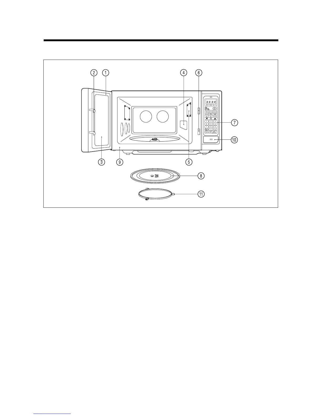 Made of special heat resisant glass. The tray must always be in proper position before operating. Do not cook food