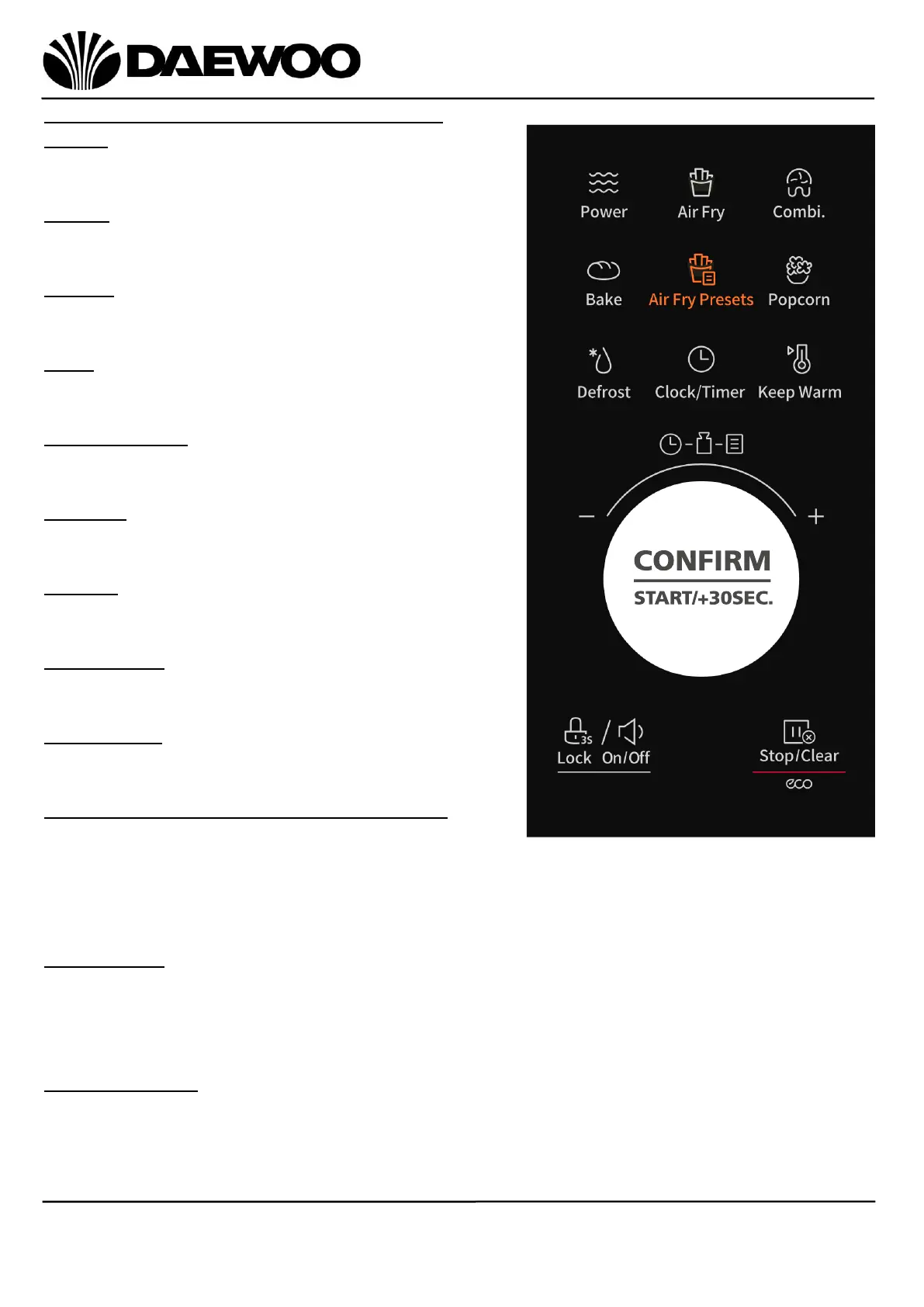 Press once to confirm the setting or start cooking.