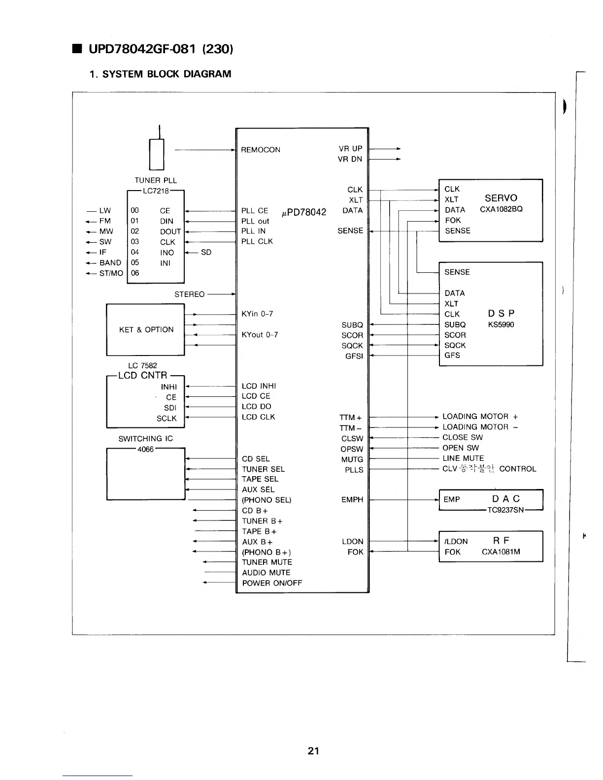 Daewoo AMI-230 - System Block Diagrams; Main System Architecture