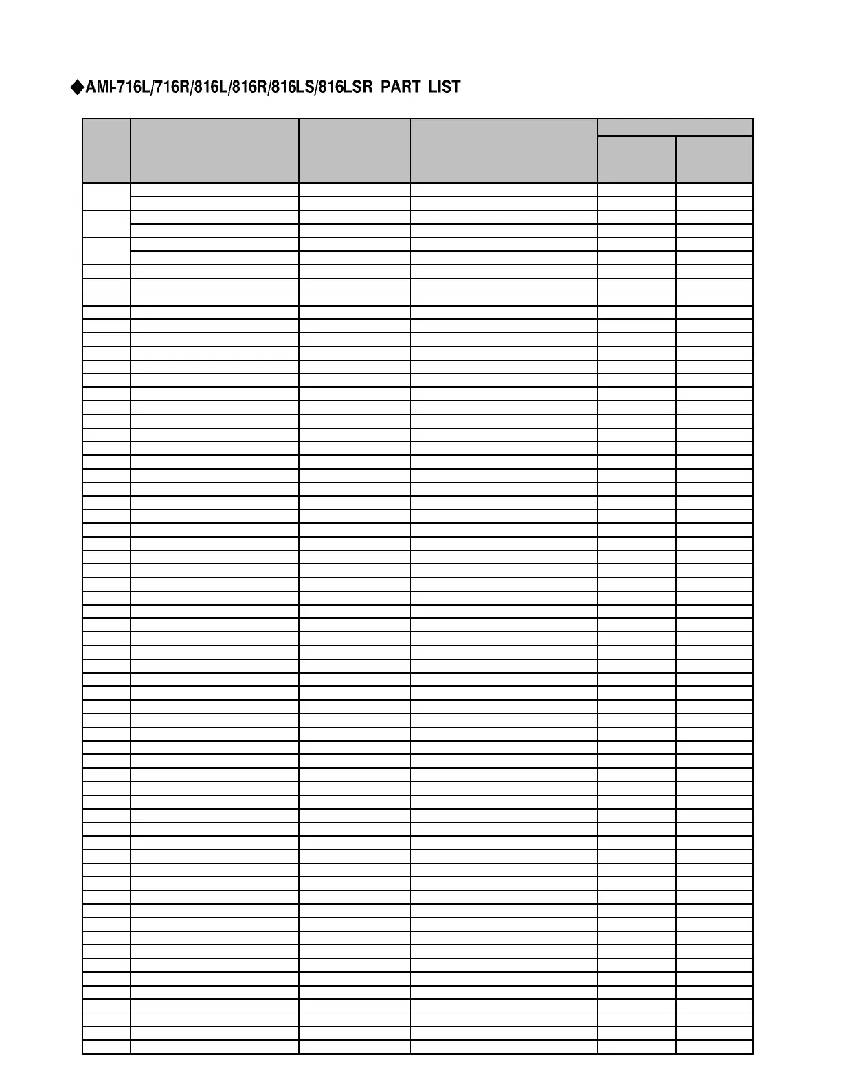 No. Parts Name Parts Code Description