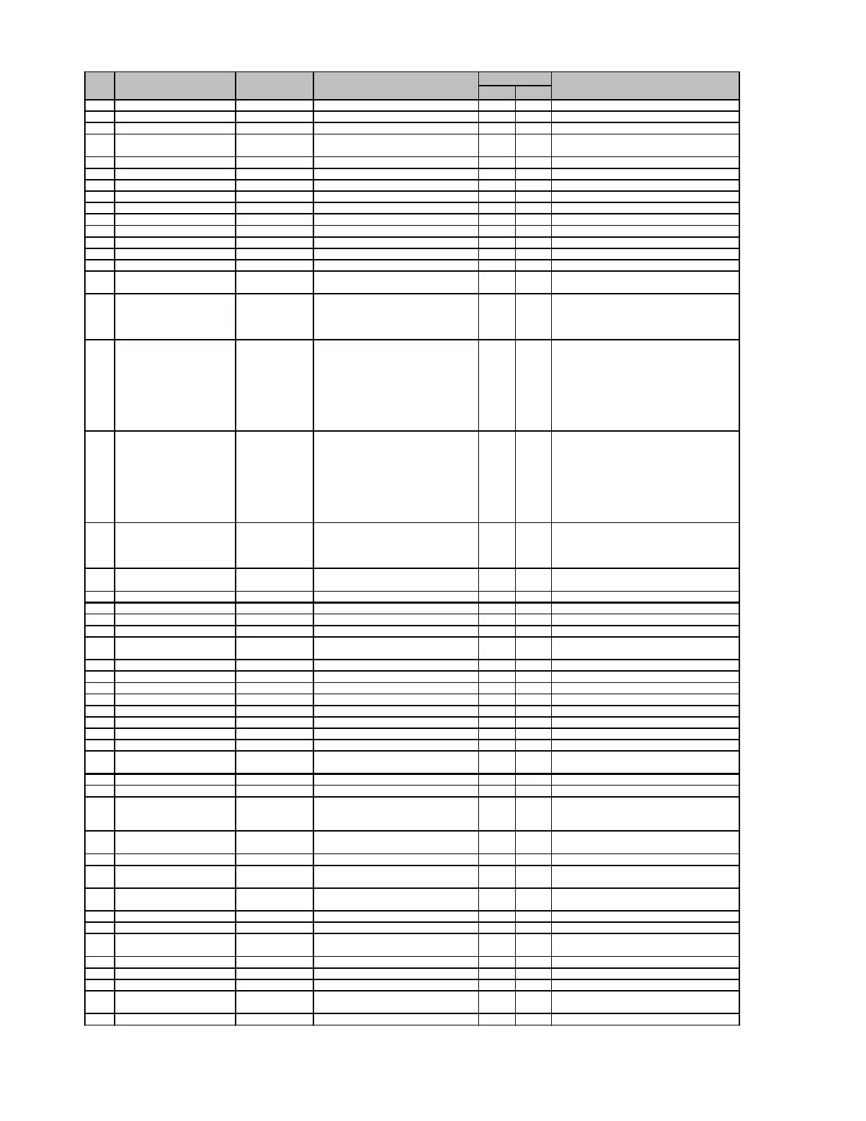 LocationNo. Parts Name Parts Code Description