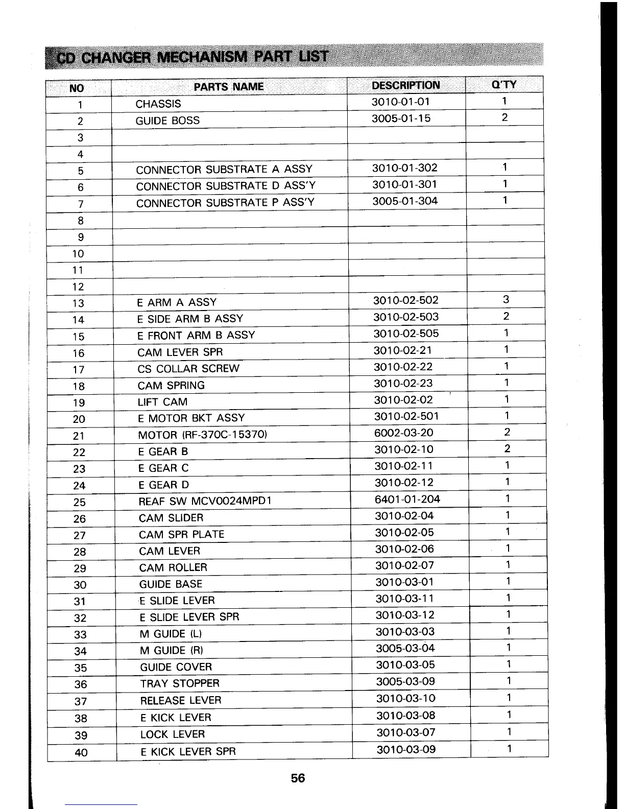 Daewoo AMI-960 - CD Changer Mechanism Part List; CD Changer Mechanism Parts