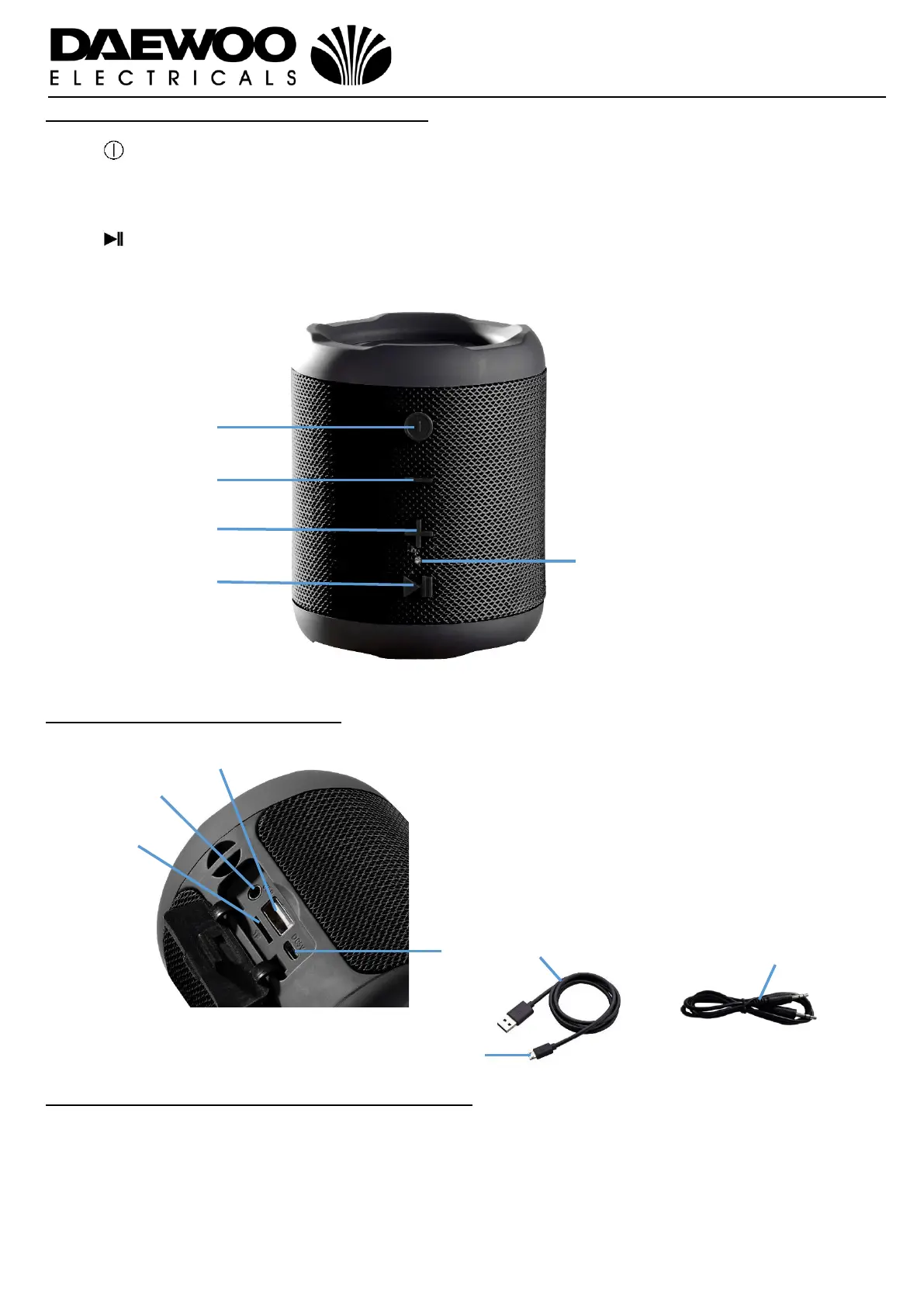 1. – Press to power up, power off and Bluetooth pair the speakers.