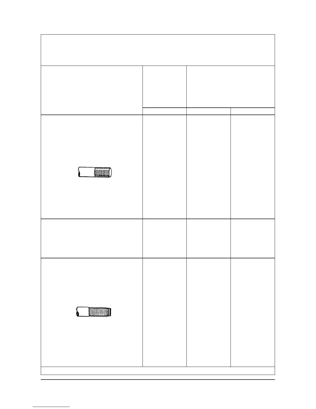 thread size Standard torque