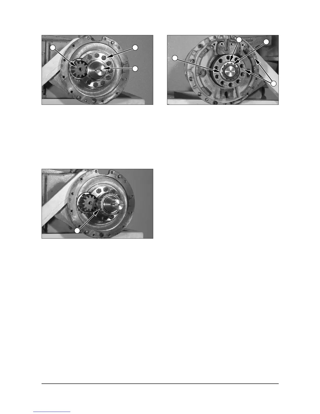 5. Put spindle (7) in position, and install bolts (6) that