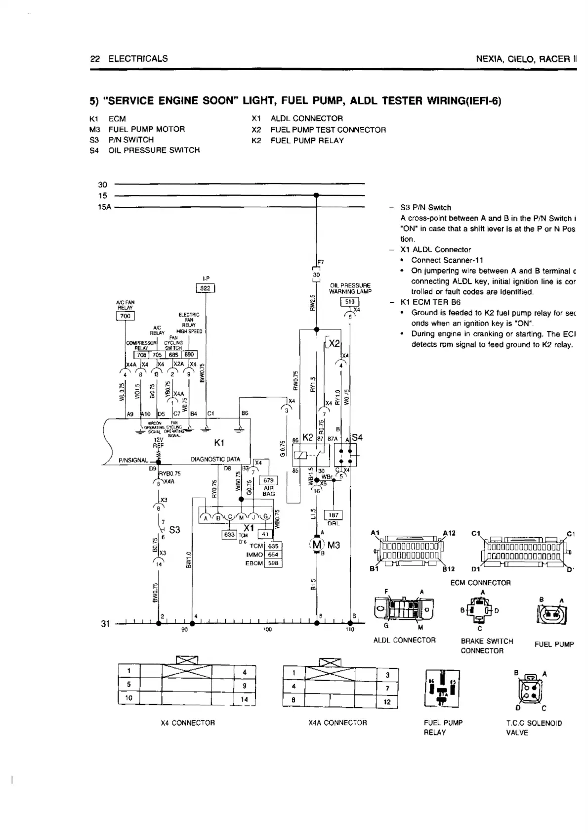 5) "SERVICE ENGINE SOON" LIGHT, FUEL PUMP, ALDL TESTER WIRING(IEFl-6)