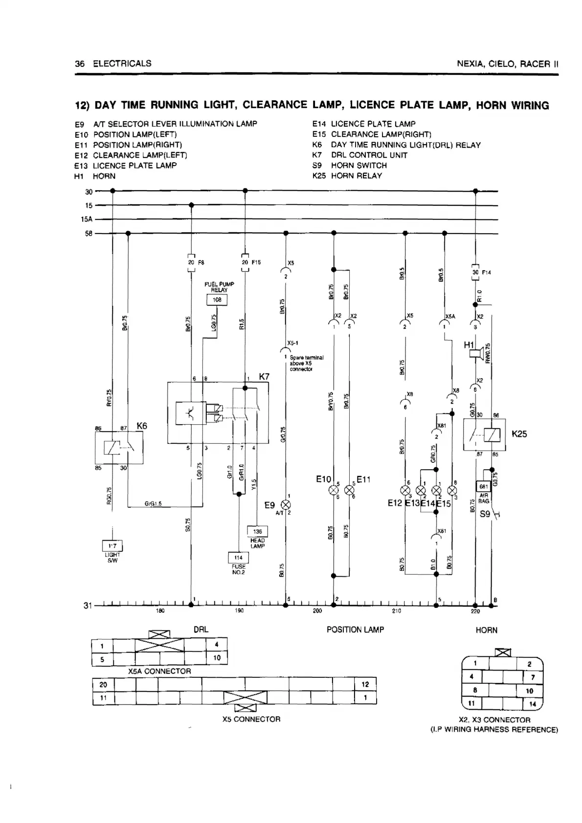 TIME RUNNING LIGHT, CLEARANCE LAMP, LICENCE PLATE LAMP, HORN WIRING