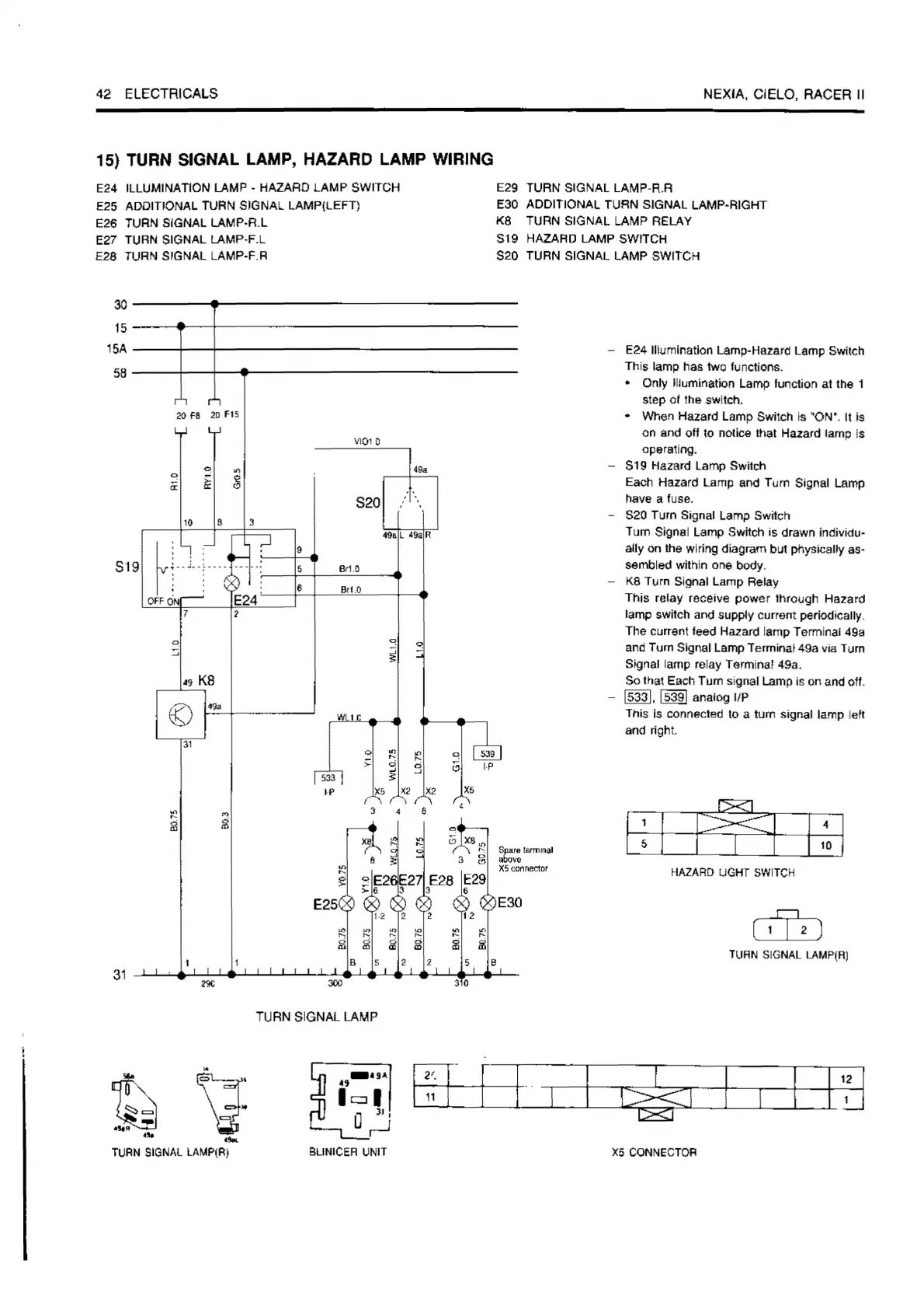 15) TURN SIGNAL LAMP, HAZARD LAMP WIRING