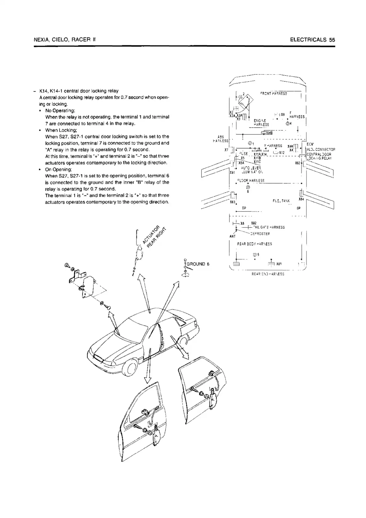 A central door locking relay operates for