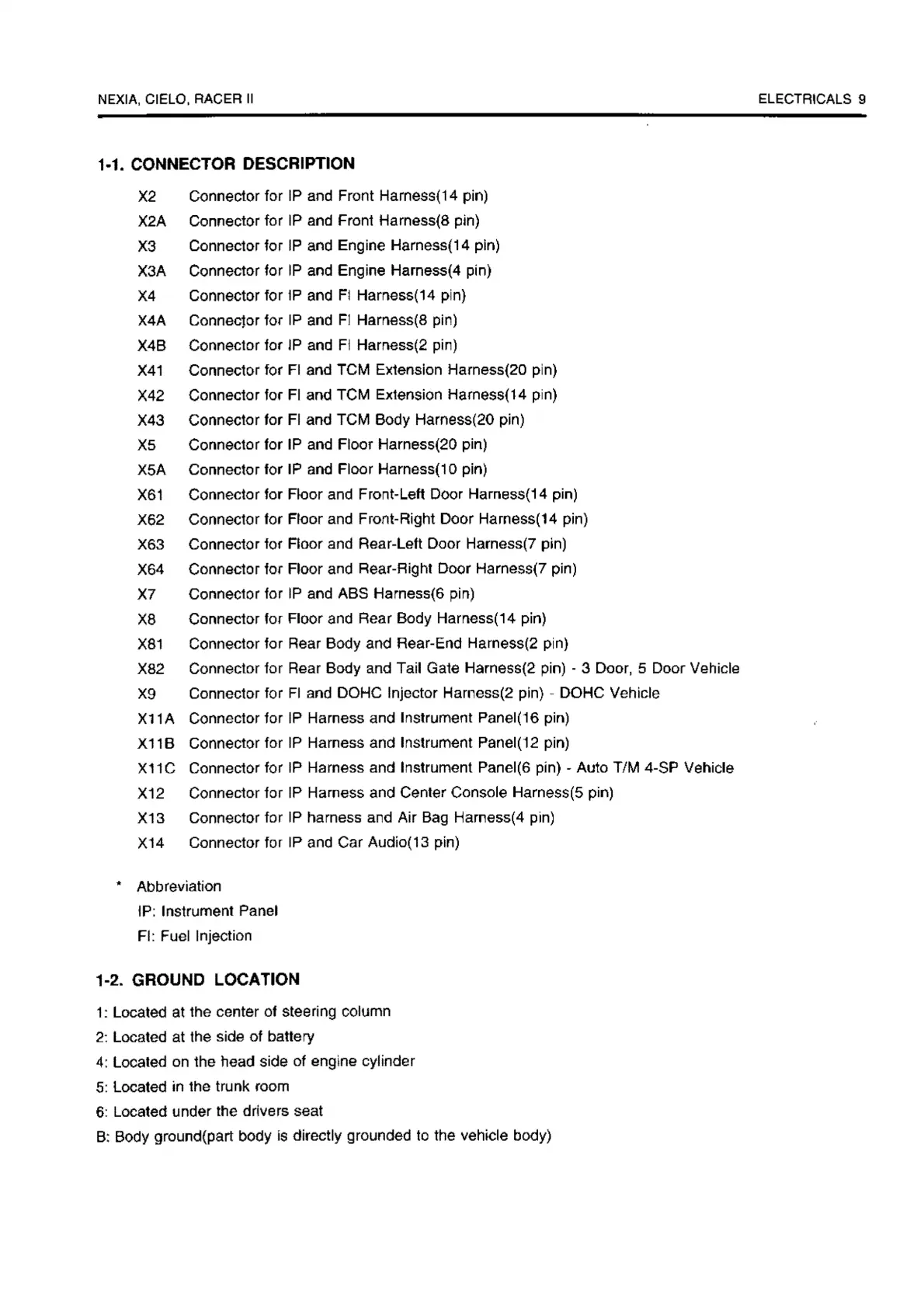 Daewoo CIELO 1998 - Harness Connector Pinouts