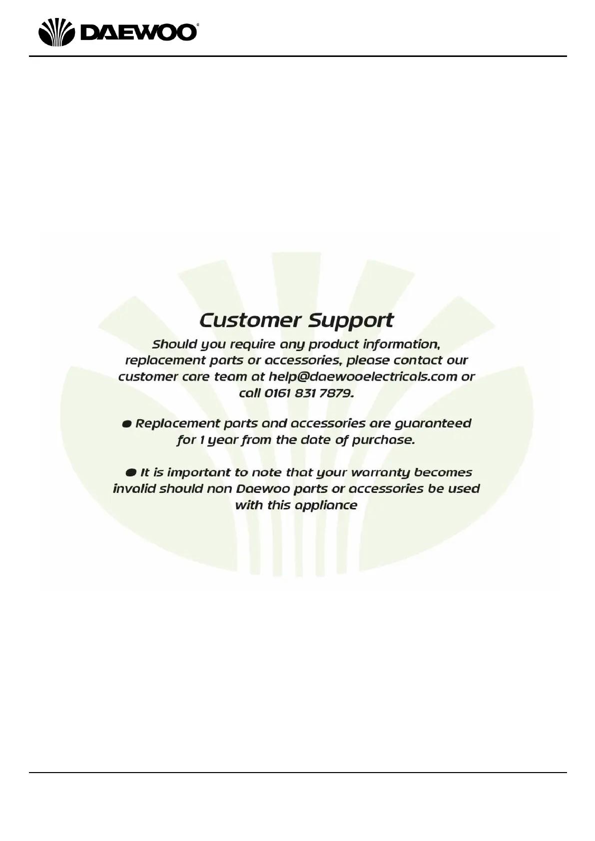 Daewoo COL1316 - Customer Support and Warranty; Customer Support Contact