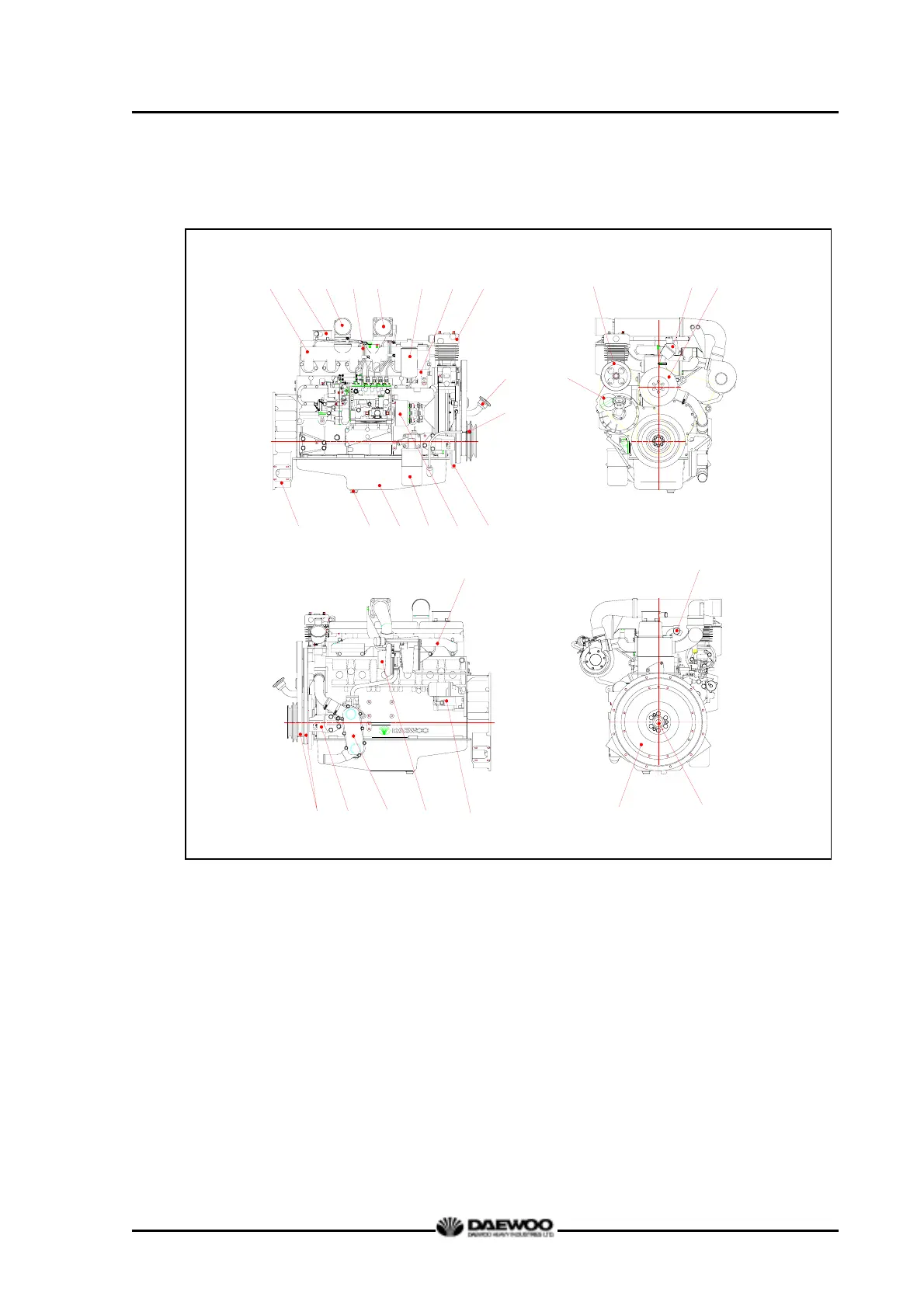 7 Power steering pump 18 Air compressor pulley 28 Fly wheel