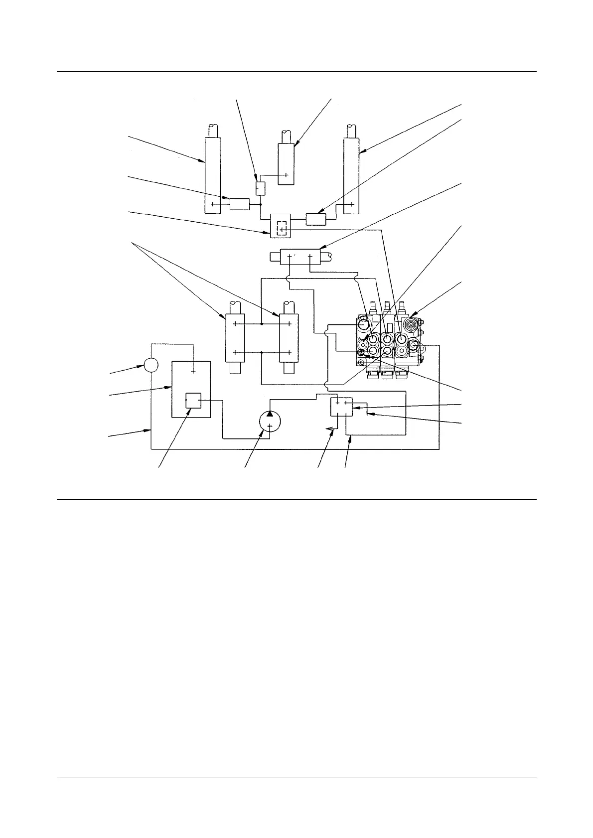 (16) Oil line to steering gear. (17) Oil line. (18) Excess folw protector. (19) Lift cylinder(primary).