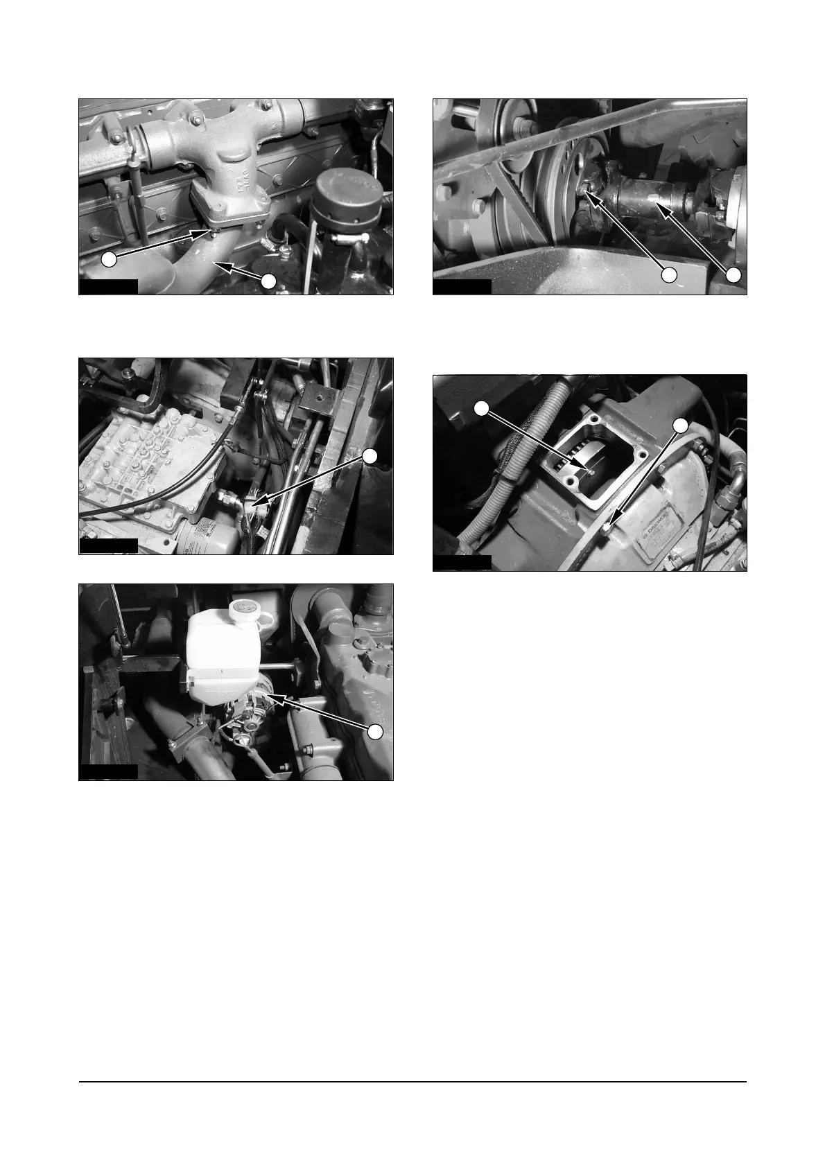 6. Loosen nuts (6) and disconnect exhaust tube (7).