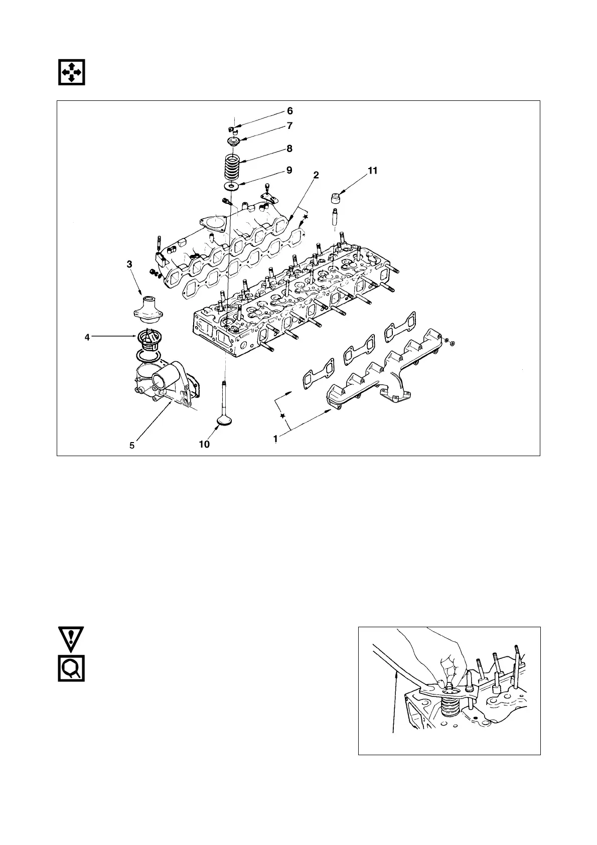 1. Exhaust manifold and gasket 7. Spring seat (upper) or *Valve rotator